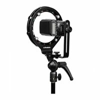 Speedlight RFi Speedlight Ring позволяет легко прикрепить 1 или 2 вспышки к софтбоксу RFi. Функциональный, интуитивно понятный дизайн обеспечивает простую вертикальную и боковую регулировку положения вспышки и возможности подключения радиоуправляемых пультов. Большая эргономичная ручка с храповым механизмом обеспечивает широкий наклон, а кольцо поворачивается на 360 градусов для точного позиционирования софтбокса. Speedlight Speed Ring имеет цветовую кодировку для быстрого монтажа на линейку световых формирователей RFi и имеет 5/8 "приемник для подставок с соответствующей верхней шпилькой.