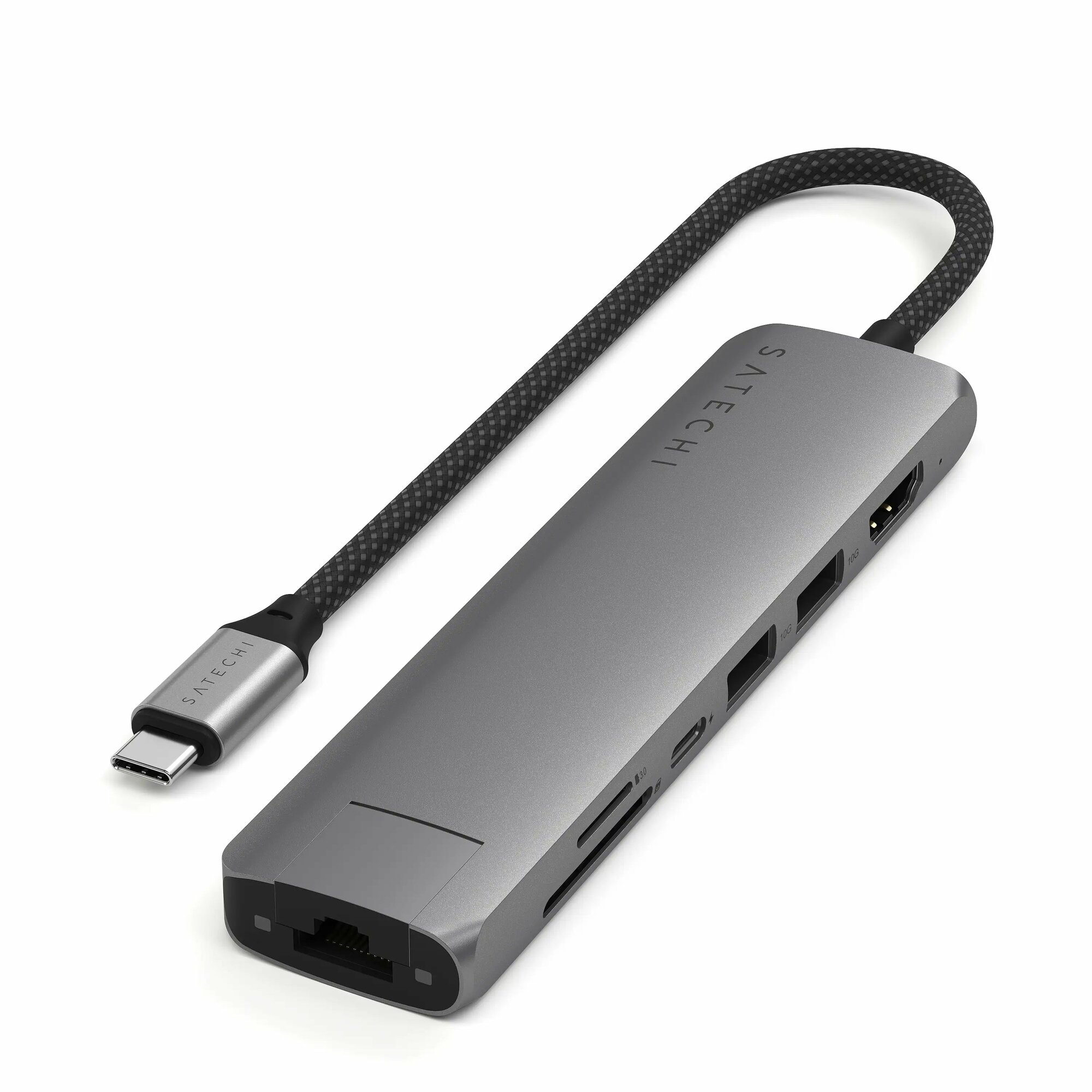 Купить Адаптер Satechi Slim Multiport 7-in-1 1xUSB-C 2xUSB-A3.2 Gen2 HDMI 4K@60Hz Ethernet 1 Gigabit Micro/SD Card Reader Space Gray с доставкой по всей России.