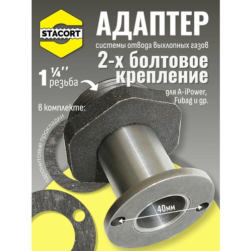 Адаптер для системы отвода выхлопных газов генератора A-iPower Адаптер для патрубка подходит на большую часть представленных на рынке бензиновых и дизельных генераторов A-iPower. Основное назначение адаптера системы отвода -соединяет выхлопной патрубок генератора и газоотводящую трубу. Для присоединения патрубка адаптера к выхлопной трубе используем 4 штатных болта, для присоединения адаптера к отводящей трубе используется накидная гайка. Надежная паронитовая прокладка обеспечивает герметичность соединения.