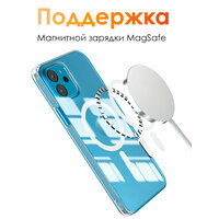Прозрачный чехол для iPhone 14 Plus (Айфон 14 Плюс) с технологией MagSafe идеально примагничивается к вашему iPhone. Силиконовый чехол MagSafe обеспечивает защиту от ударов и падений, а также позволяет эффективно использовать беспроводную зарядку и многие другие аксессуары MagSafe. Встроенные магниты точно совпадают с магнитами на задней поверхности iPhone. Благодаря идеальному совмещению с устройством чехол надёжно держится, а беспроводная зарядка становится быстрее. Снимать чехол на время зарядки не нужно — просто присоедините зарядное устройство MagSafe или положите iPhone на зарядное устройство стандарта Qi.