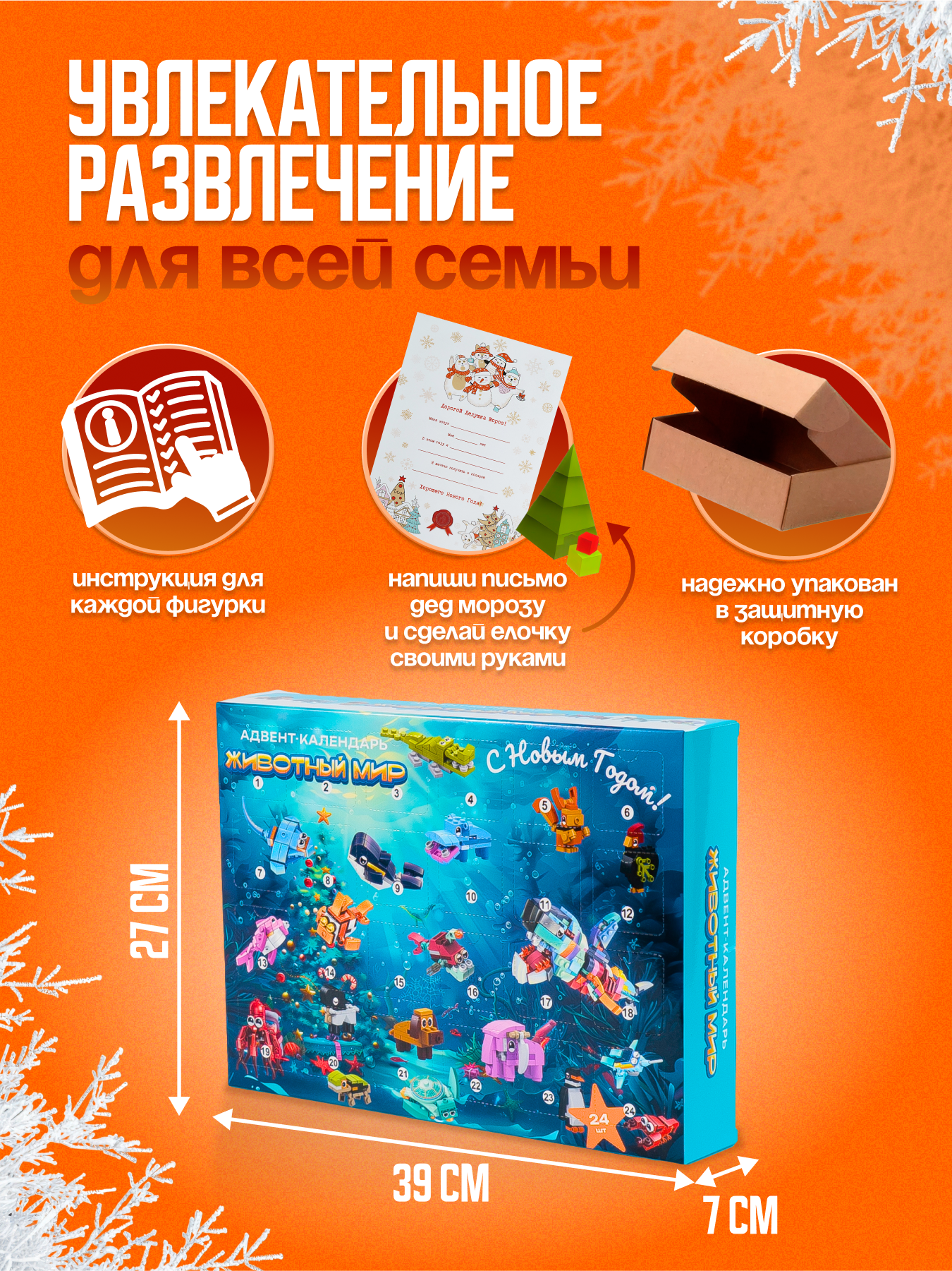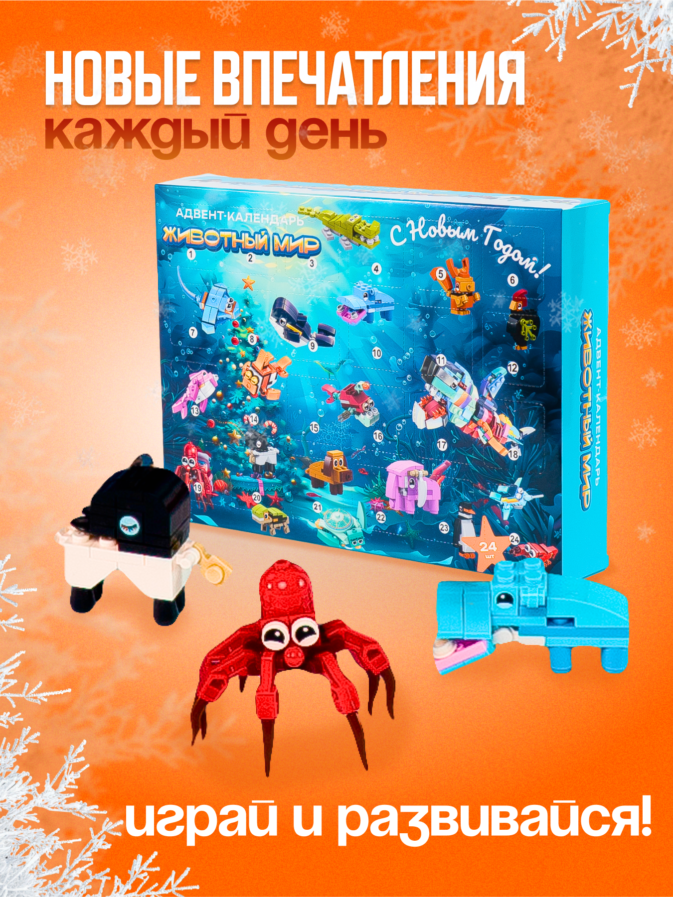Адвент-календарь "Животный мир" – это увлекательный конструктор, состоящий из 24 элементов, который подарит вашему ребенку массу радости и веселья!