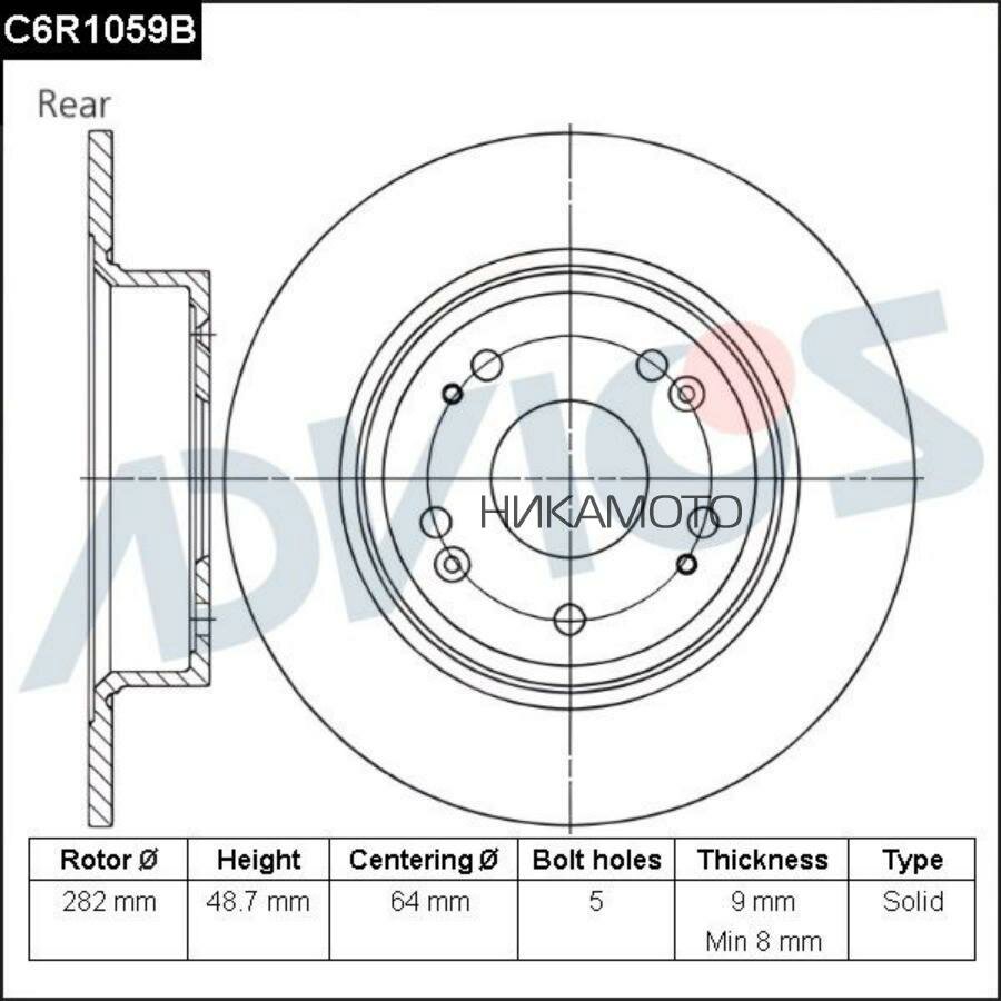 Купить ADVICS C6R1059B Диск тормозной HONDA Accord (2008-2020) задний с доставкой по всей России.