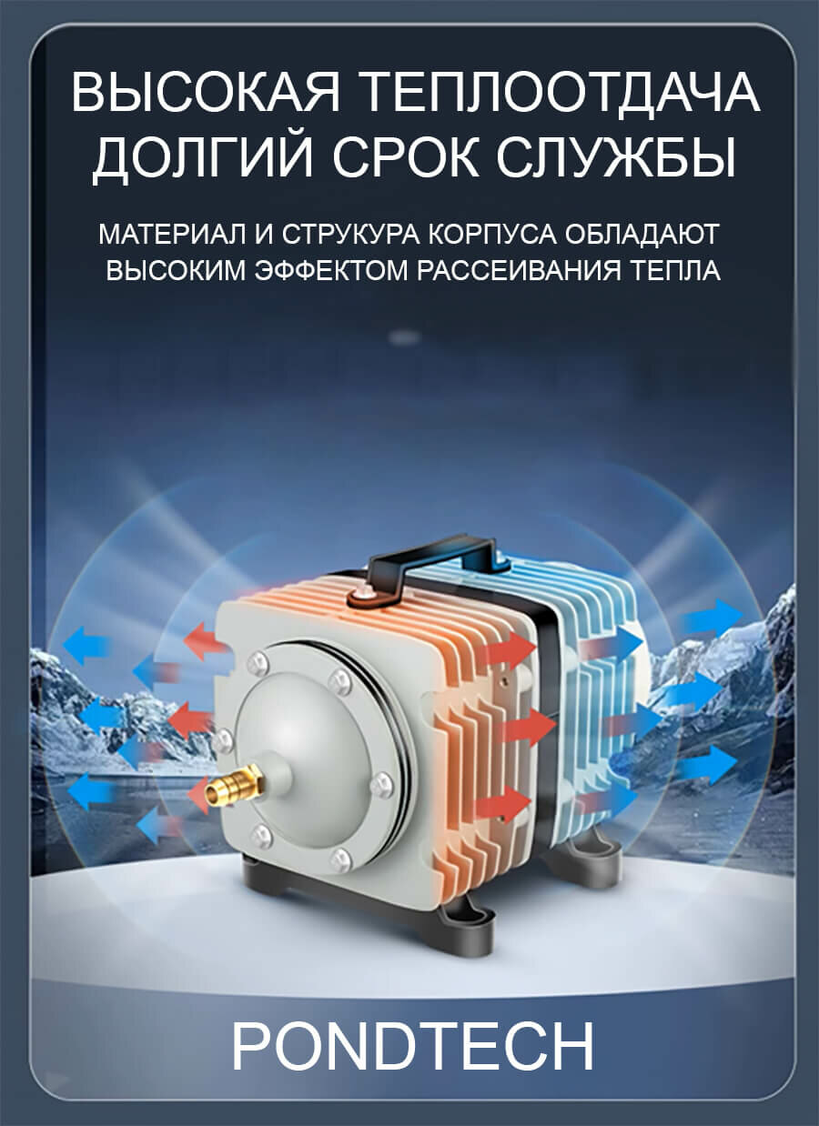 - Компрессор универсальный, подходит для аквариумов, прудов, септиков, рыбных хозяйств, пузырьковых панелей, коптилен.