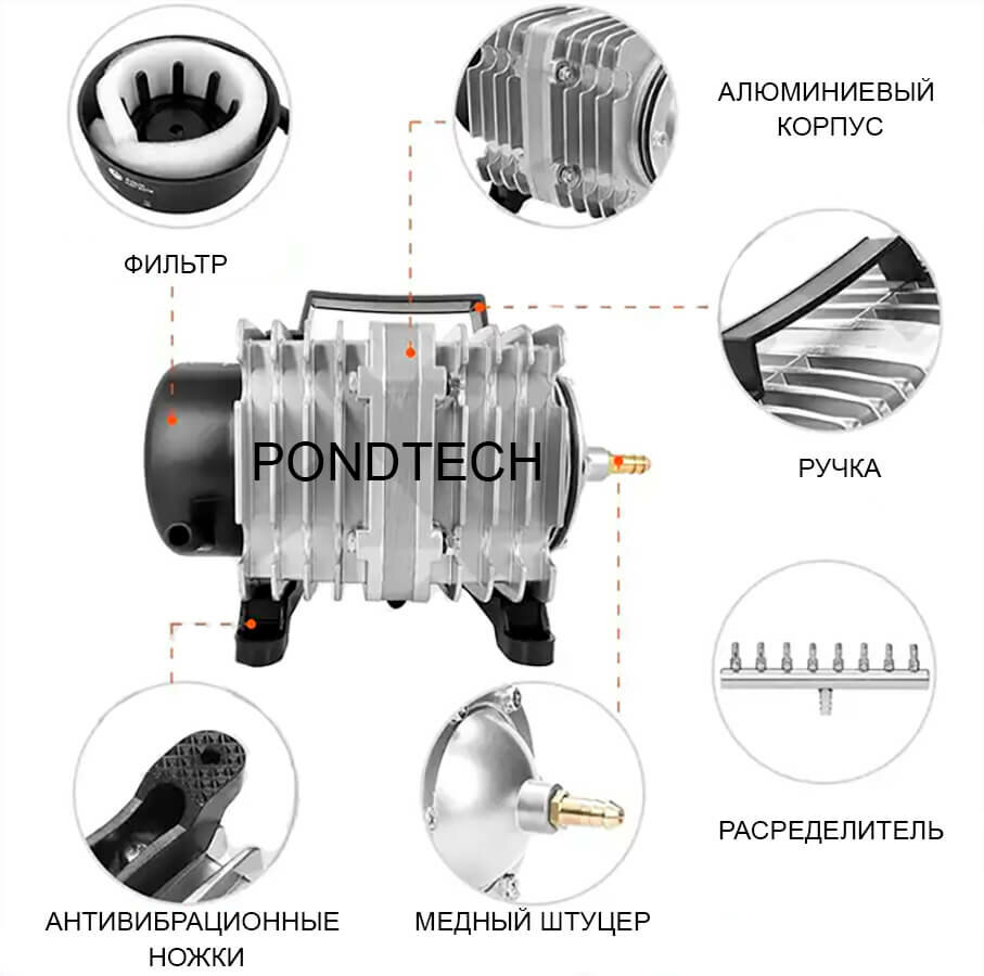 - Мощный поршневой Компрессор аэратор для пруда септика аквариума ACO 007 Pondtech