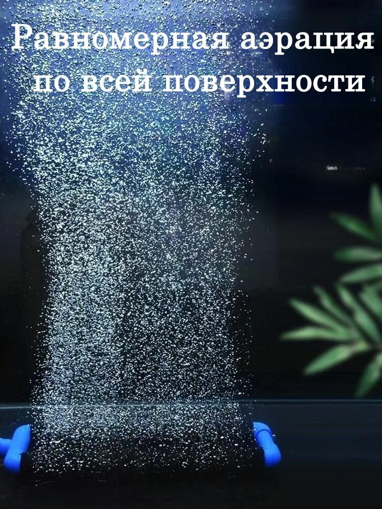 Трубчатый двухсекционный аэратор распылитель из мелкопористой резины на пластиковом тонущем каркасе для пруда, аквариума или септика используется для обогащения воды кислородом, повышенное количество кислорода дает возможность большую плотность посадки рыбы и развитие аэробных микроорганизмов. Трубку аэратор используют в рециркуляционных системах, замкнутых и открытых декоративных прудах и промышленных водоемах. В системах очистки сточных вод. Отличительной особенностью такого распылителя является наличие каучуковой перфорированной мембраны, что позволяет перерабатывать максимальную производительность компрессора. Аэратор аквариумный хороший выбор для создания комфортных условий в аквариуме. Устойчив к кислотам и щелочам, долговечен Равномерная аэрация по всей поверхности распылителя Изготовлен из качественного пластика и пористой резины Не токсичен, не выделяет вредных веществ (безвреден для рыб) Может использоваться со всеми типами компрессоров: Мембранные компрессоры Поршневые компрессоры Вихревые компрессоры 12-вольтовые компрессоры Универсальный распылитель обладает отрицательной плавучестью (он тяжелее воды и будет тонуть), для него необходимо делать поплавок для расположения на заданной глубине или фиксировать к каркасу. Аэратор для пруда погружной помогает поддерживать здоровую экосистему, улучшая качество воды и насыщая её кислородом.