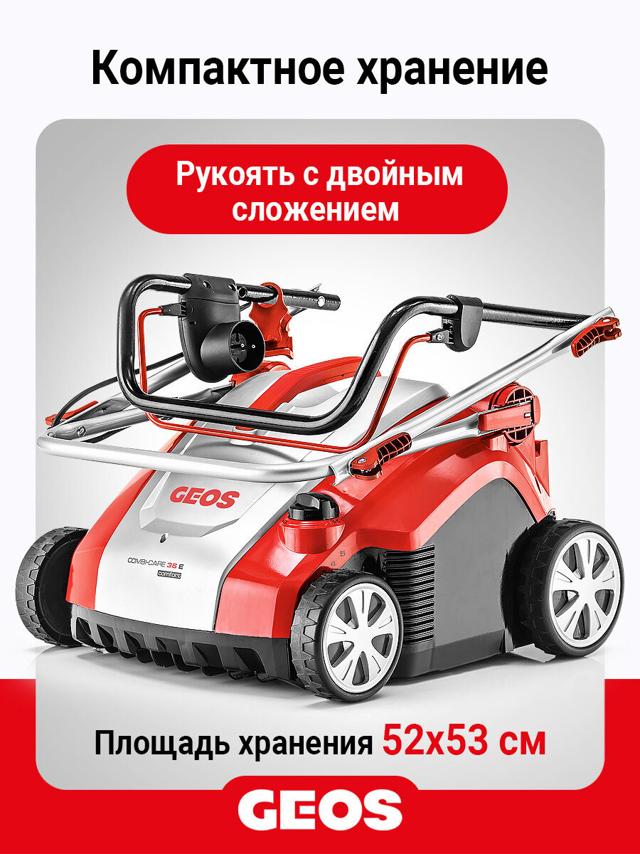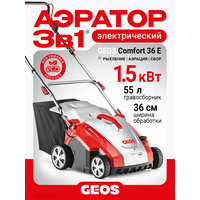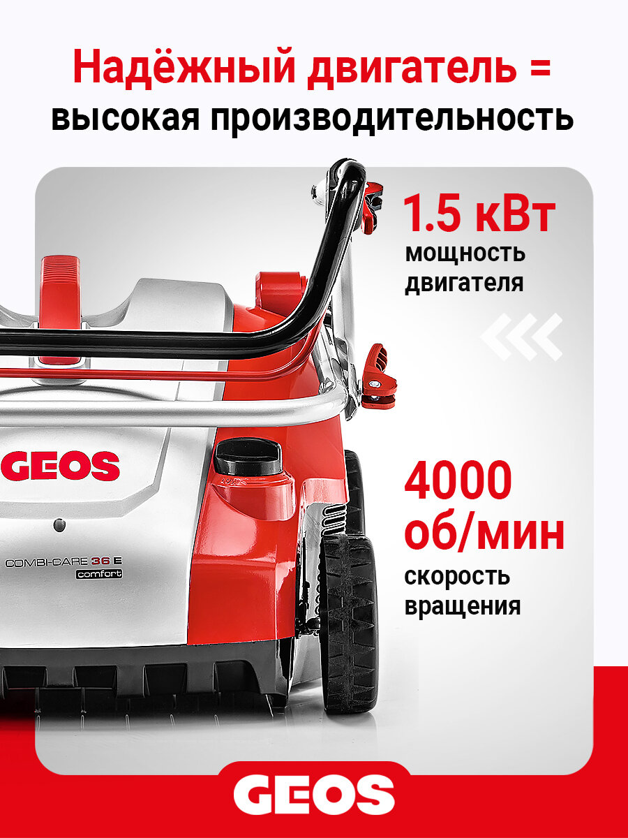 Аэратор скарификатор GEOS Comfort 36 E Combi Care используется для ухода за газоном площадью до 800 м².