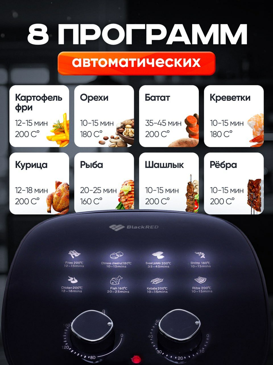 Аэрогриль электрический BlackRED 5.5 л, 8 программ, мощность 1500Вт, ручное управление: сравнение цен, характеристики, фото, актуальное наличие и цены.