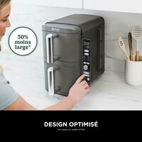 * Технология Double Stack Air Fry: Готовьте на 4 уровнях одновременно для равномерного и хрустящего результата. Благодаря специальным решеткам, вы можете удвоить пространство для приготовления.