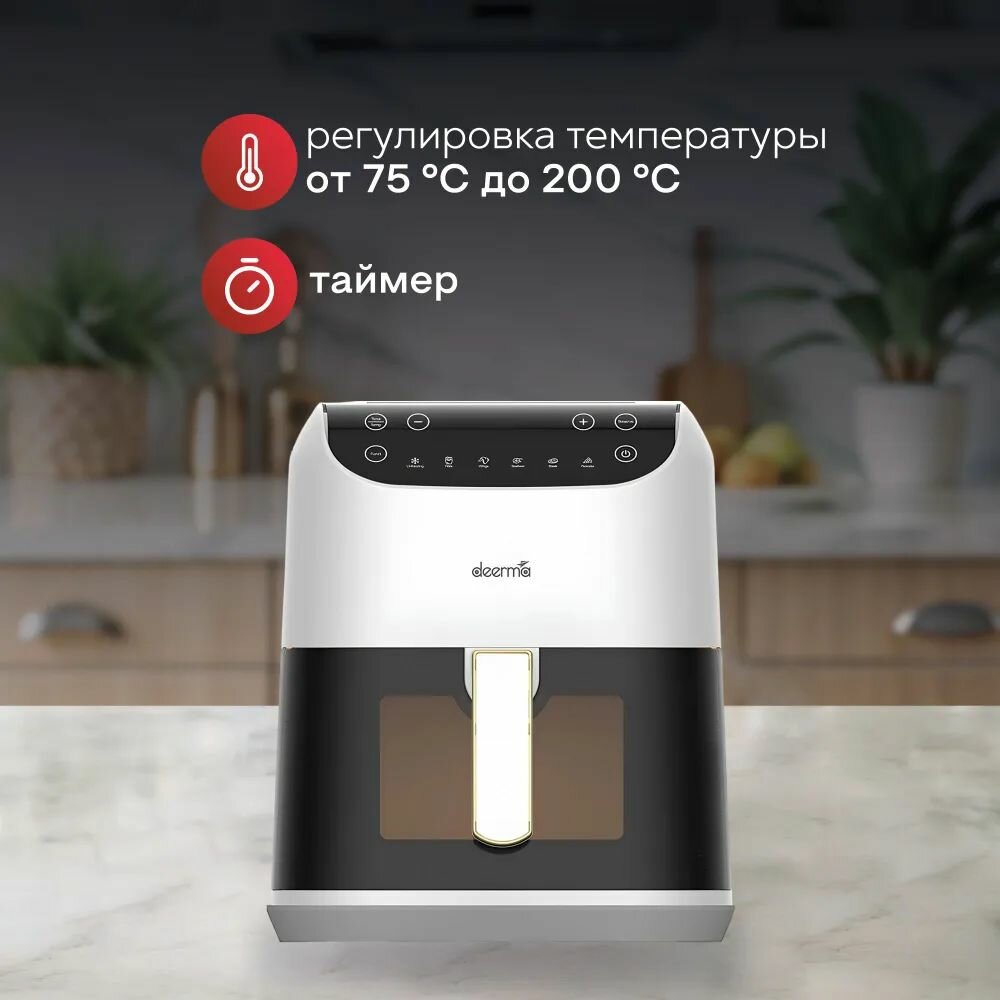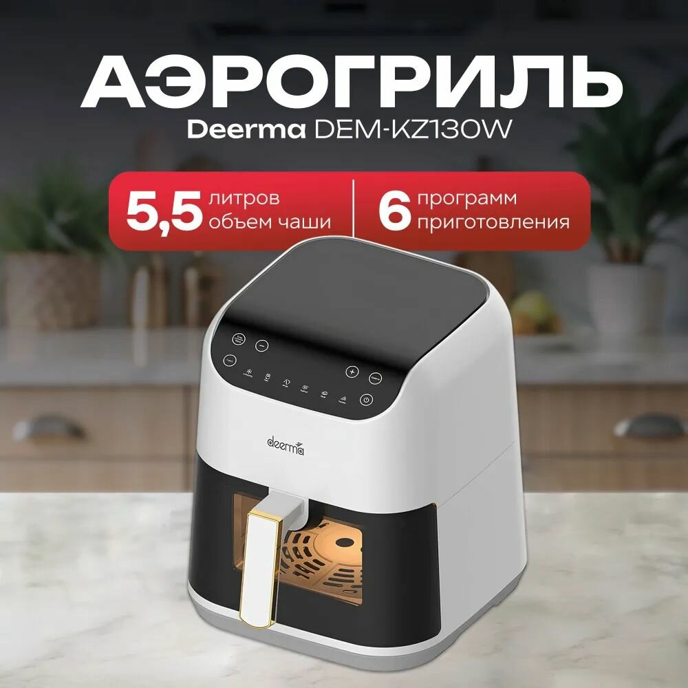 Купить Аэрофритюрница DEERMA Air Fryer DEM-KZ130W белая, 5.5 л, 1400 Вт, 6 программ с доставкой по всей России.