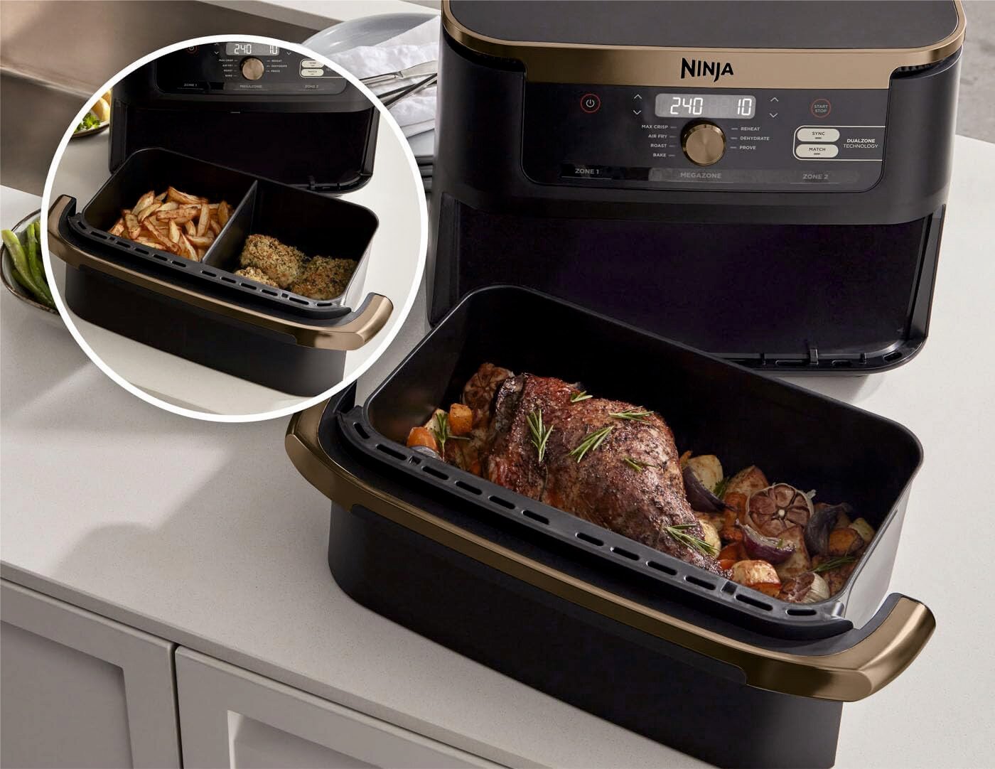 Аэрофритюрница NINJA Foodi FlexDrawer AF500EUCP, 10.4 л, мощность 2470 Вт, цвет золото/черный: сравнение цен, характеристики, фото, актуальное наличие и цены.