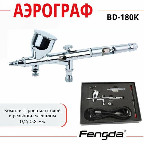 Fengda BD-180K Аэрограф классического типа с верхней подачей краски, широкого спектра применения. Наличие Air control позволяет регулировать давление подаваемого воздуха на аэрографе.