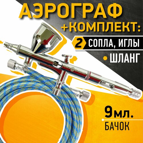эрограф "Спутник-1" Универсальный + комплект (шланг, 3 сопла, 3 иглы, фильтр)