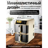 Аэрогриль 2 чаши BRAYER BR2047, 2400Вт, 11л, 2 независимые чаши, 10 режимов, LED-дисплей, конвекция, бежевый