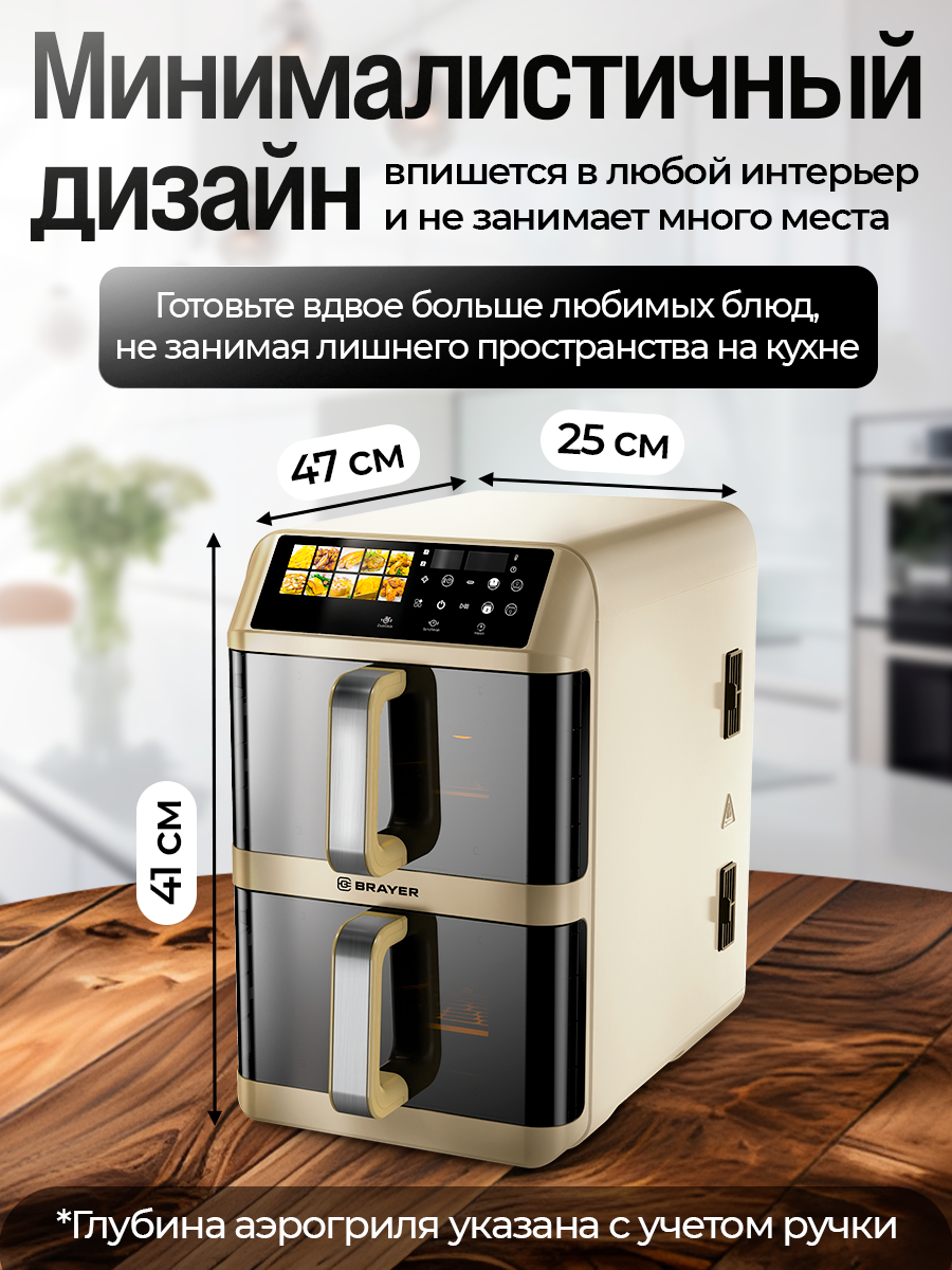 Аэрогриль 2 чаши BRAYER BR2047, 2400Вт, 11л, 2 независимые чаши, 10 режимов, LED-дисплей, конвекция, бежевый: сравнение цен, характеристики, фото, актуальное наличие и цены.