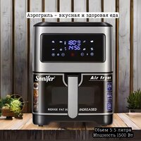 Аэрогриль Sonifer 5.5л, электронное управление, ТЭН, таймер, съёмная чаша, серебристо-черный: сравнение цен, характеристики, фото, актуальное наличие и цены.