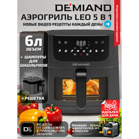 Купить Аэрогриль 5 в 1, с функциями фритюрницы, гриля, духовки, визуальное окно, съемная решетка с тефлоновым покрытием, держатель для шампуров, 8 автоматических программ, книга рецептов, объем 6 литров, 1500Вт, черный, DK-2500 с доставкой по всей России.