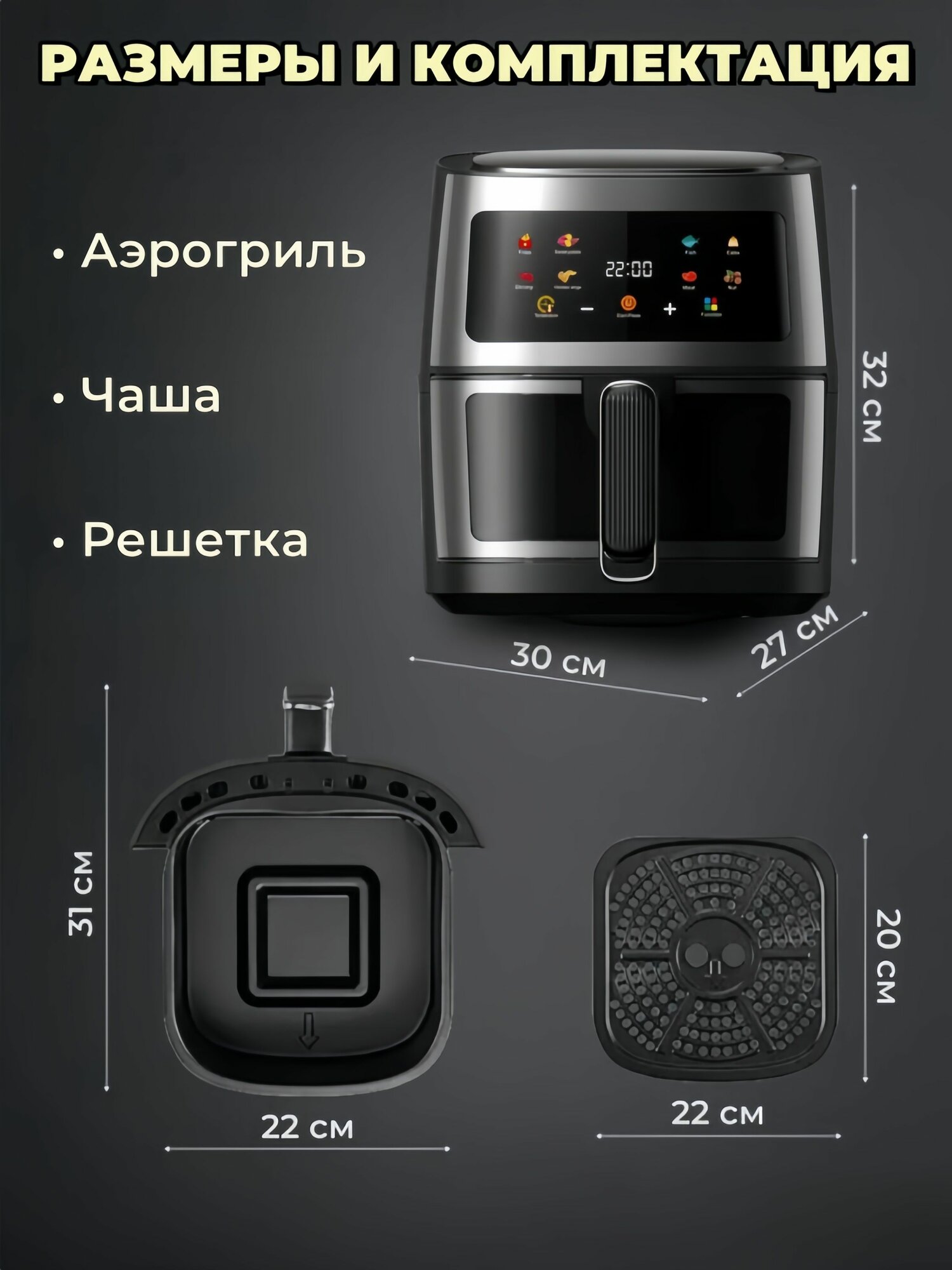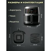 Аэрогриль 8 литров, 8 в 1 электрический с функциями фритюрницы, гриля, черный: сравнение цен, характеристики, фото, актуальное наличие и цены.