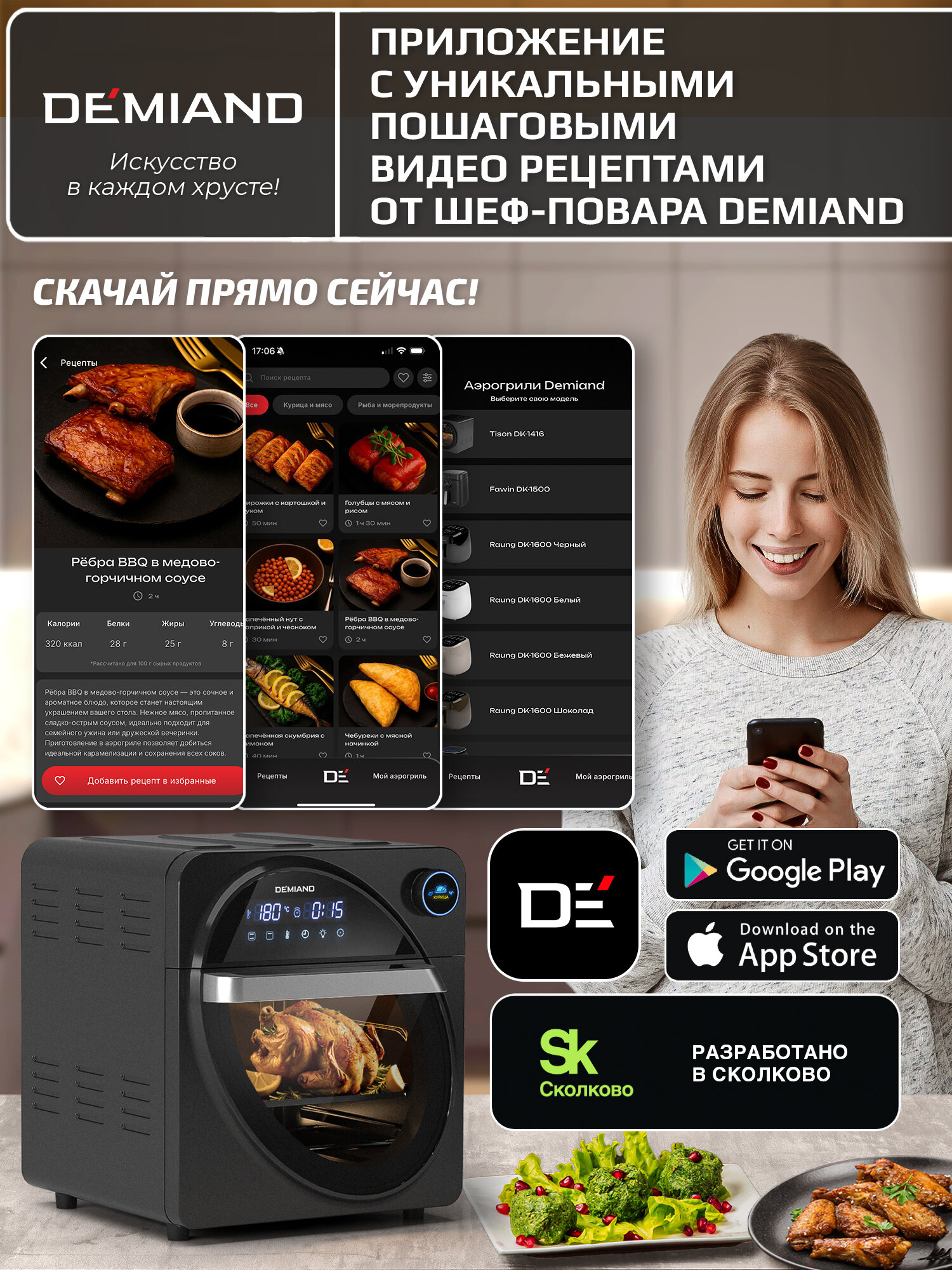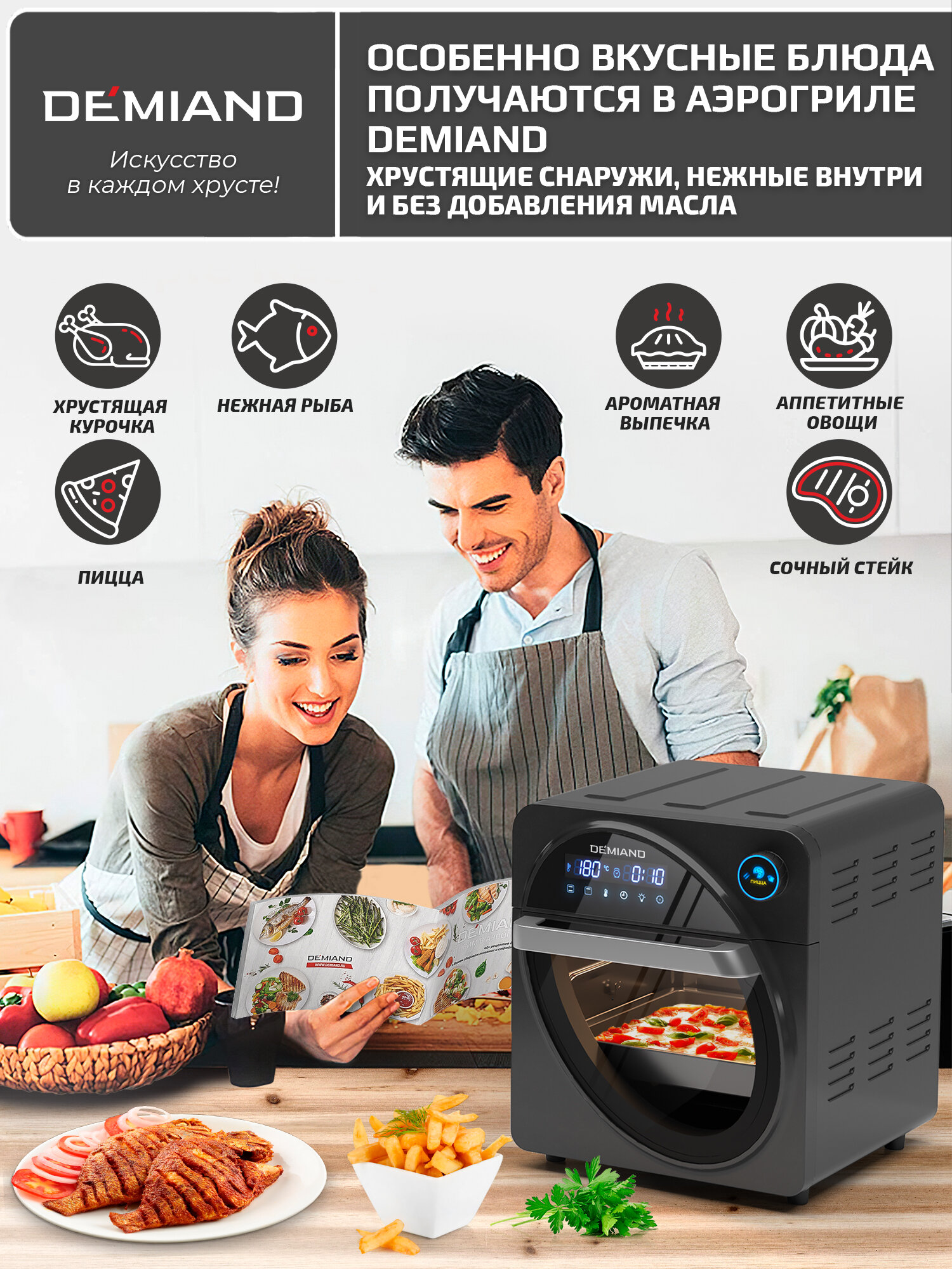 Аэрогриль DEMIAND Waison – это многофункциональный прибор, заменяющий 10 бытовых приборов: фритюрницу, микроволновую печь (разогрев пищи без вреда для здоровья; нет СВЧ-излучений), гриль, духовку, тостер, йогуртницу, шашлычницу, мини-печь (ростер), кухонную плиту и дегидратор (сушка продуктов).