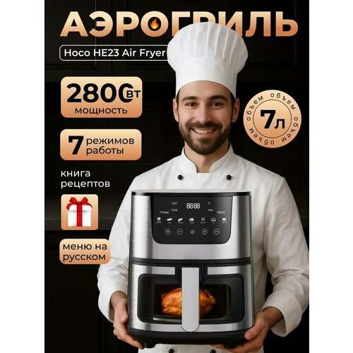 Аэрогриль электрический объемом 7 литров представляет собой современное кухонное устройство, которое сочетает в себе функции гриля и аэрогриля. Он оснащен сенсорной панелью управления, что делает его использование максимально удобным и простым.