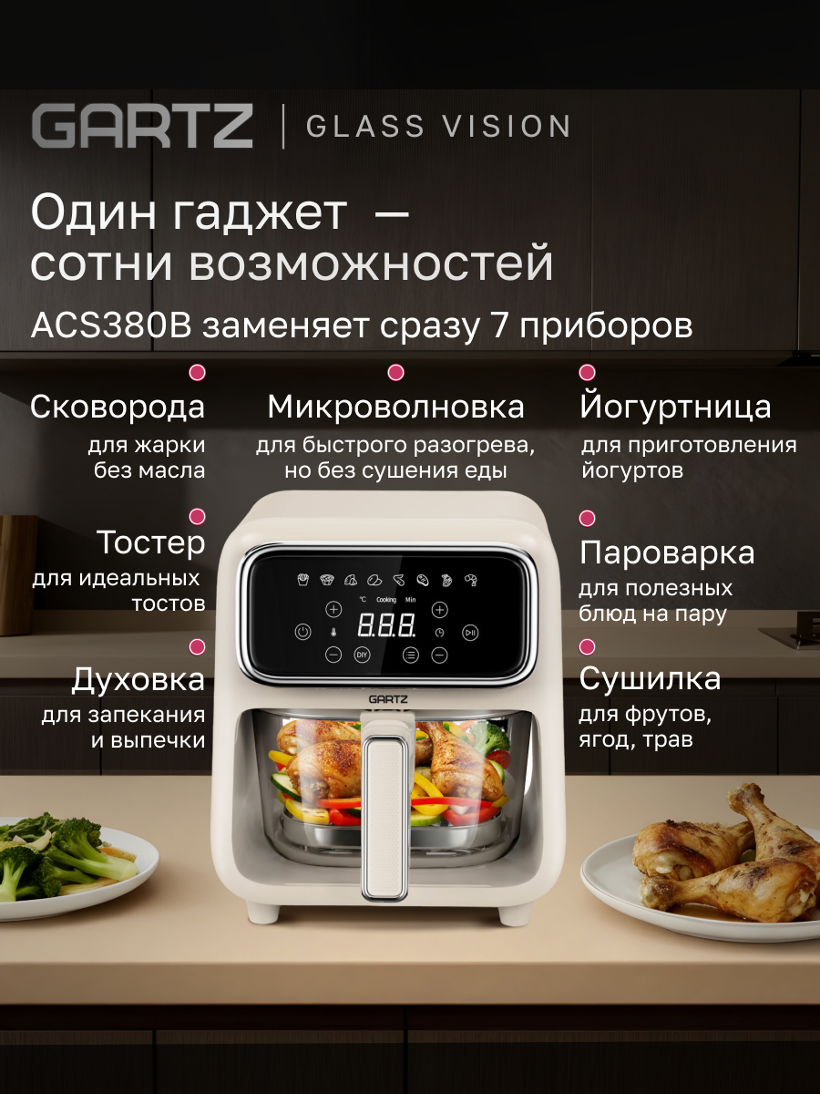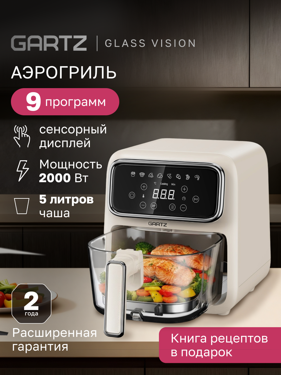 Аэрогриль Аэрогриль GARTZ AGO250K Glass Vision, 5 л, стеклянная чаша, 2000 Вт, 2 ТЭНа, 9 программ, рукавица в комплекте: сравнение цен, характеристики, фото, актуальное наличие и цены.