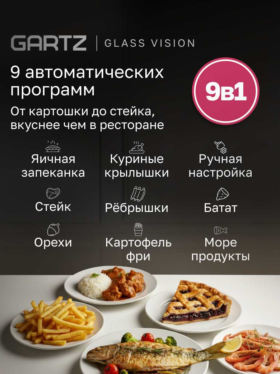 Аэрогриль GARTZ ACO270B SmartChef, 7 л, 1800 Вт, 12 программ