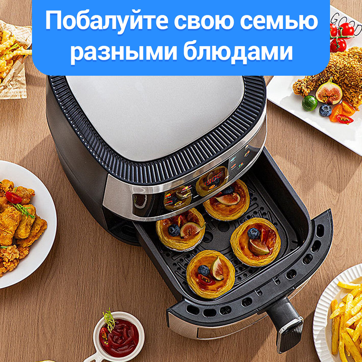 Купить Аэрогриль , чаша 5 л , 100 вкладышей , 8 программ , 1400 Вт , сенсорное управление, с окном, Металлический корпус с доставкой по всей России.