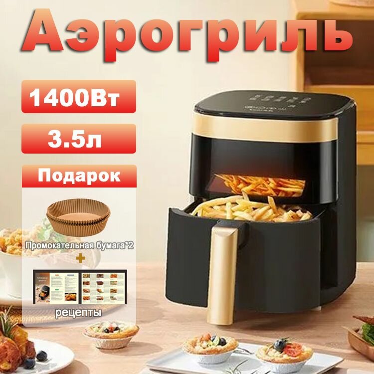 Аэрогриль черный /Аэрофритюрница электрическая/объем 3.5 л/Мультипечь для кухни: сравнение цен, характеристики, фото, актуальное наличие и цены.