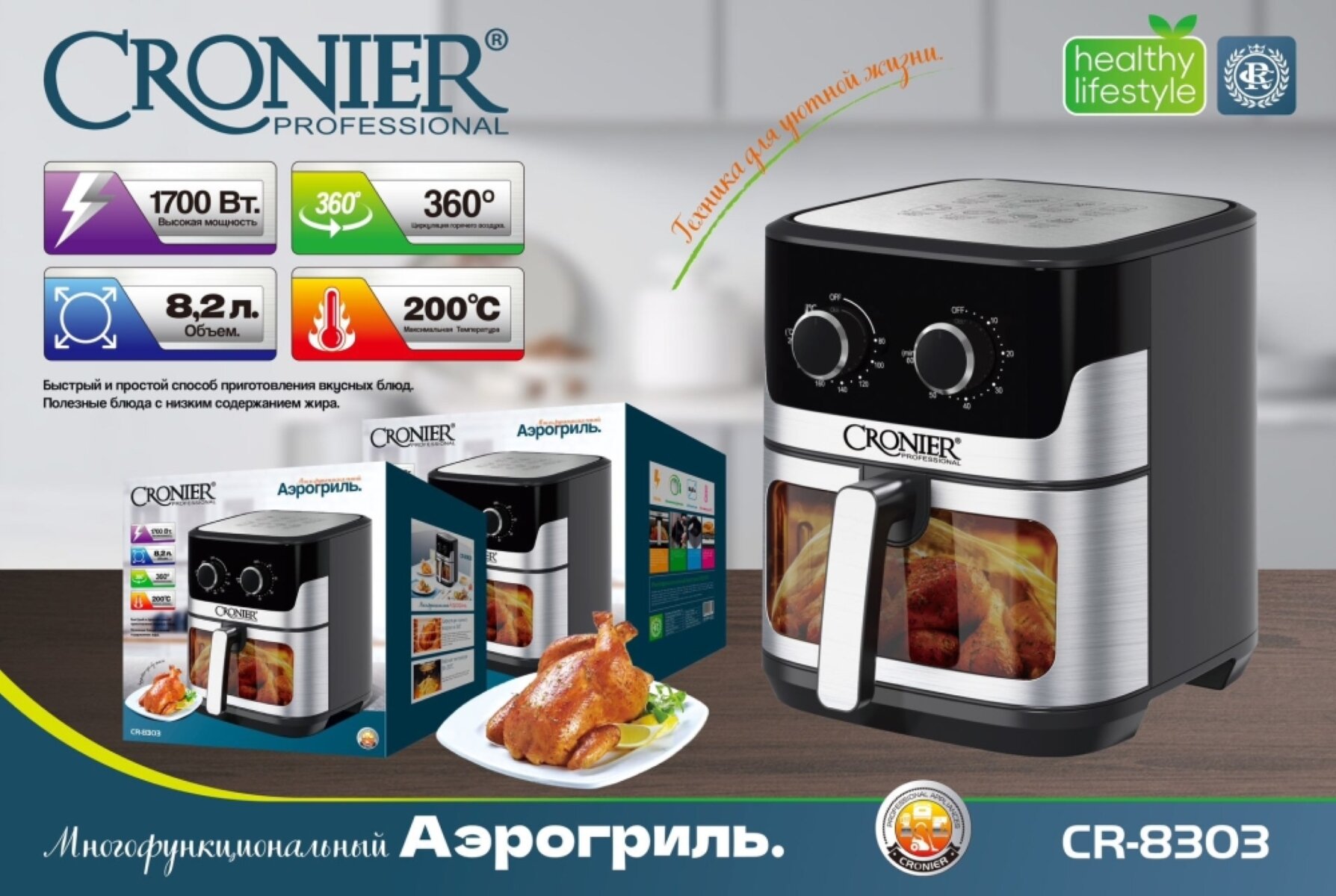 Аэрогриль Электрический CRONIER CR-8303 / Аэрофритюрница для дома с чашей, 1700 Вт, 8.2 л: сравнение цен, характеристики, фото, актуальное наличие и цены.