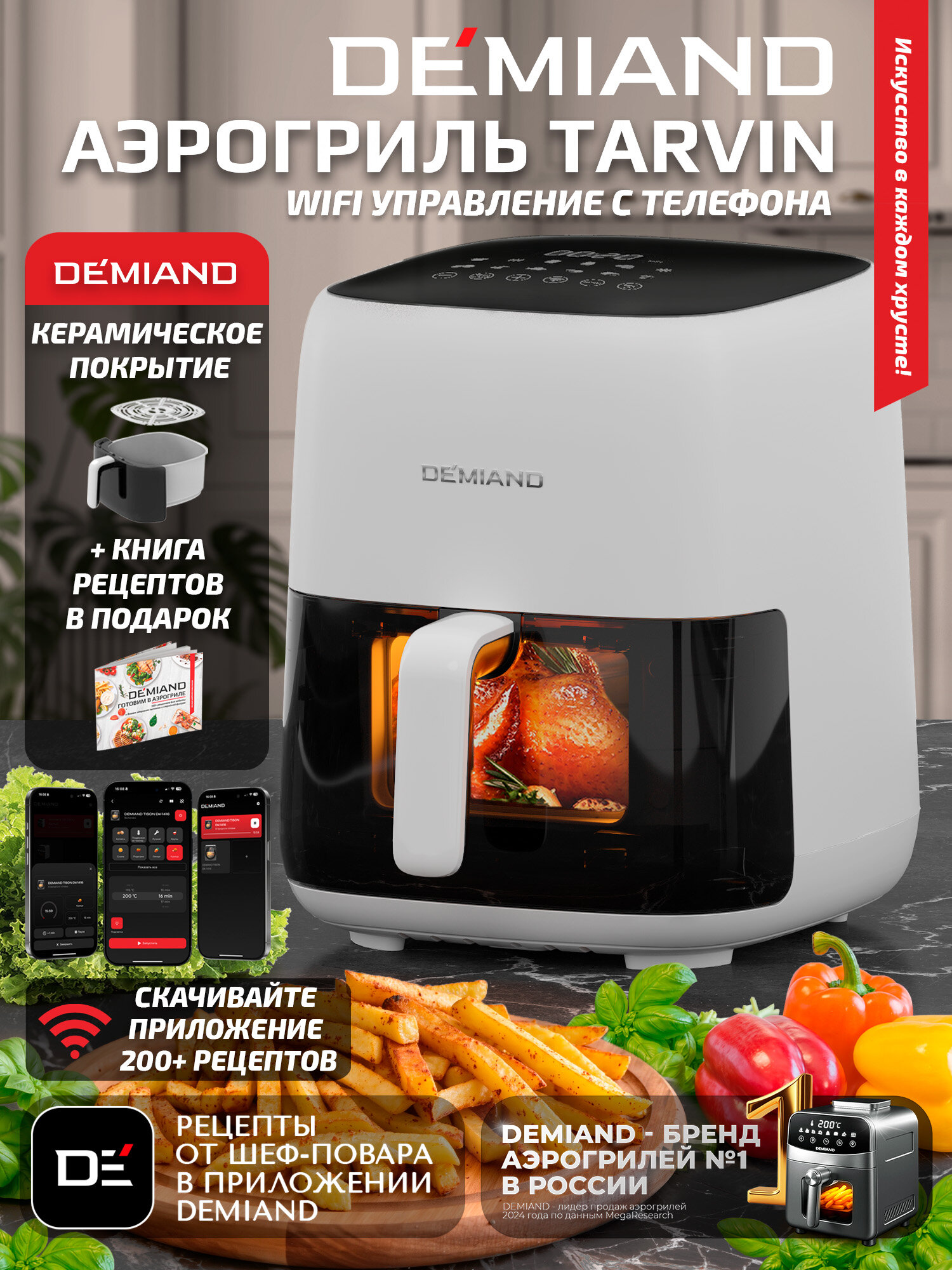 Аэрогриль DEMIAND TARVIN — это умный кухонный прибор нового поколения, который объединяет функции фритюрницы, гриля, духовки и мини-печи. Он создан для тех, кто ценит вкусную домашнюю еду и хочет готовить с комфортом. Благодаря встроенному модулю Wi-Fi и фирменному приложению WiFi-пульт Demiand управлять процессом приготовления можно прямо со смартфона. Пользователь может регулировать температуру, выбирать программы, останавливать или запускать аэрогриль одним касанием, даже находясь в другой комнате. Приложение также отправляет уведомления о завершении приготовления и открывает новый уровень удобства.