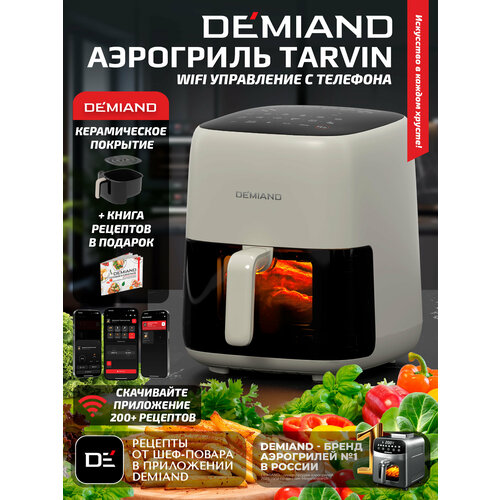Аэрогриль DEMIAND TARVIN — это умный кухонный прибор нового поколения, который объединяет функции фритюрницы, гриля, духовки и мини-печи. Он создан для тех, кто ценит вкусную домашнюю еду и хочет готовить с комфортом. Благодаря встроенному модулю Wi-Fi и фирменному приложению WiFi-пульт Demiand управлять процессом приготовления можно прямо со смартфона. Пользователь может регулировать температуру, выбирать программы, останавливать или запускать аэрогриль одним касанием, даже находясь в другой комнате. Приложение также отправляет уведомления о завершении приготовления и открывает новый уровень удобства.