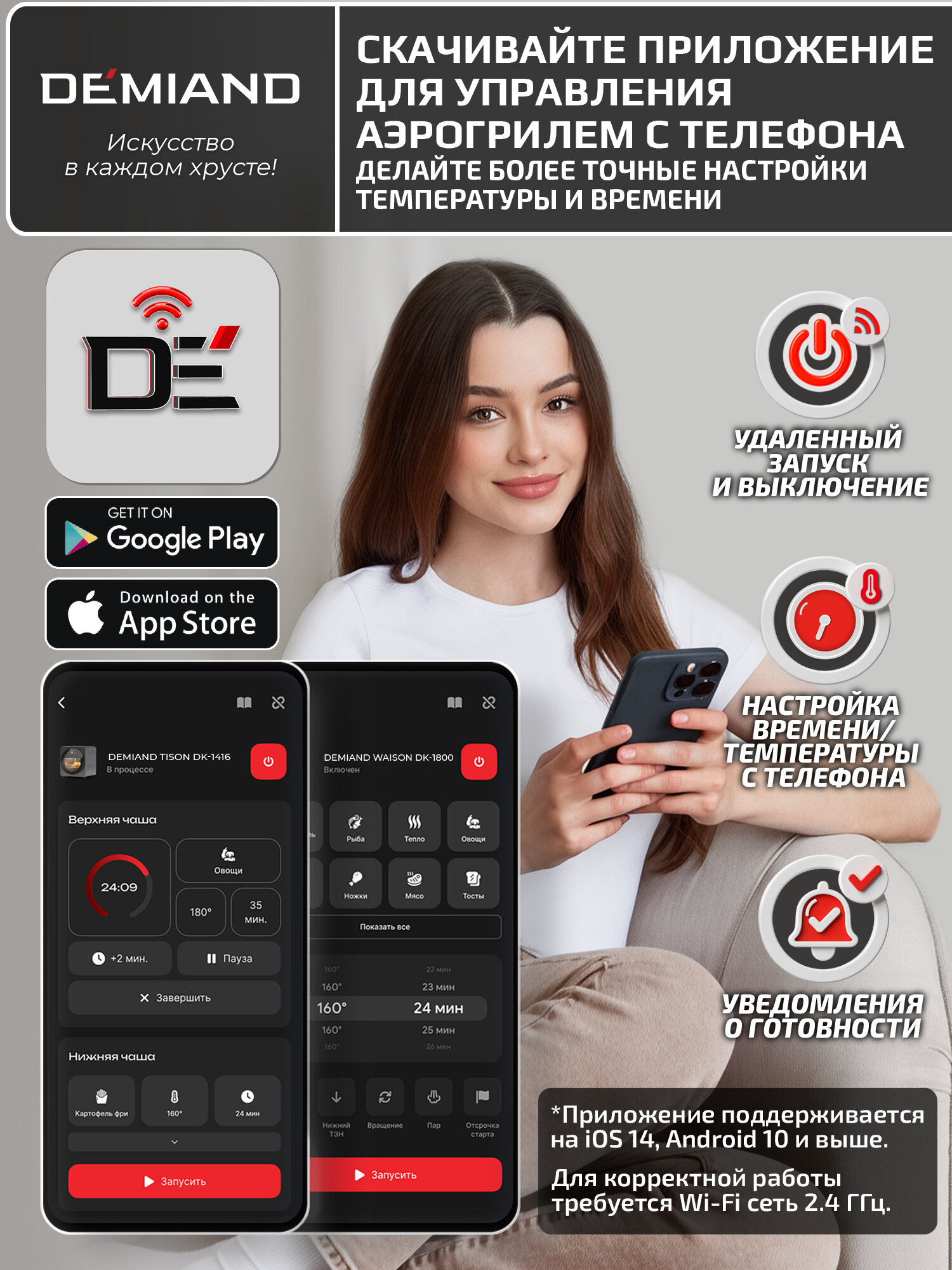 Купить Аэрогриль DEMIAND TISON, 14,5л, DK-1416 с Wi-Fi с доставкой по всей России.
