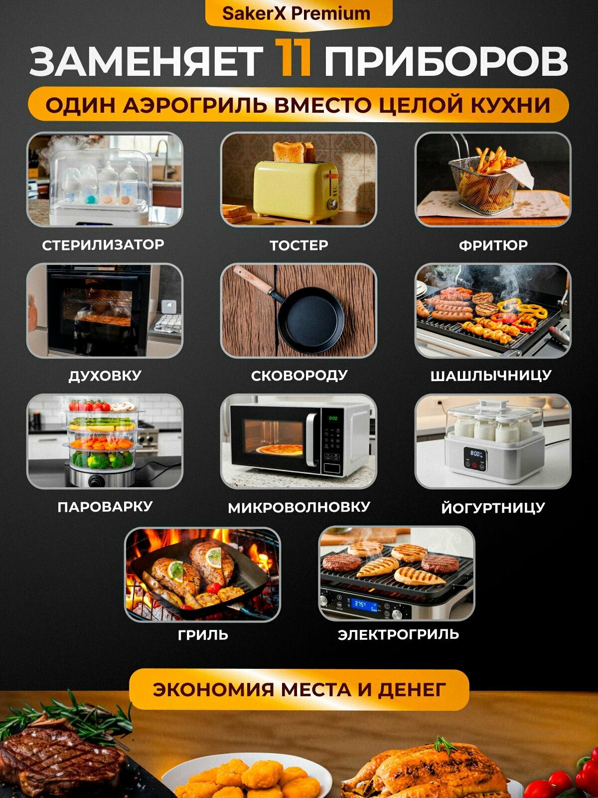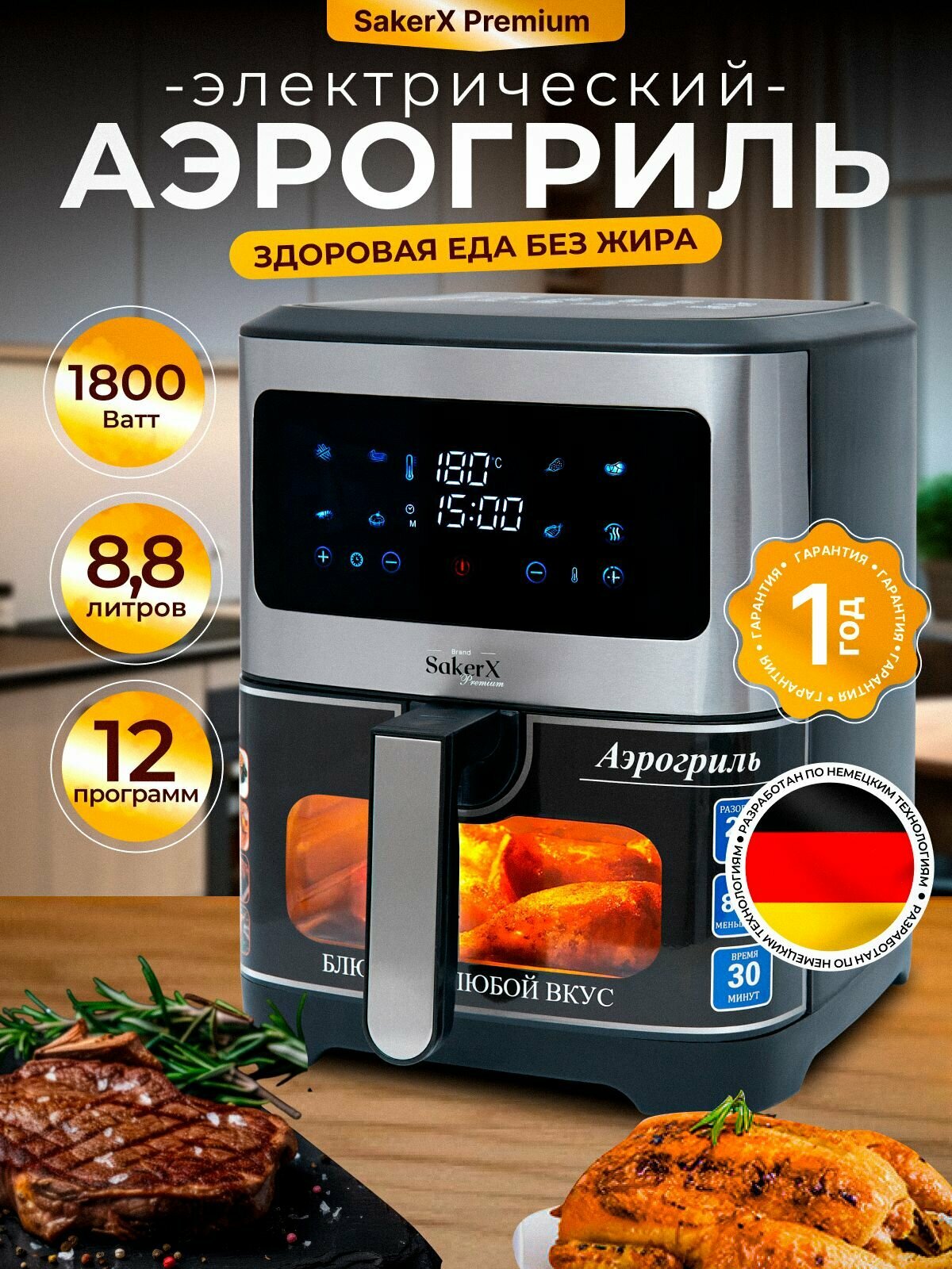 Купить Аэрогриль электрический 12 в 1, SakerX, 8,8 литров, 1800 ВТ, 12 программ, сенсорное управление, визуальное окно, съемная решетка, защита от перегрева с доставкой по всей России. Аэрогриль электрический 12 в 1, SakerX, 8,8 литров, 1800 ВТ, 12 программ, сенсорное управление, визуальное окно, съемная решетка, защита от перегрева: сравнение цен, характеристики, фото, актуальное наличие и цены.