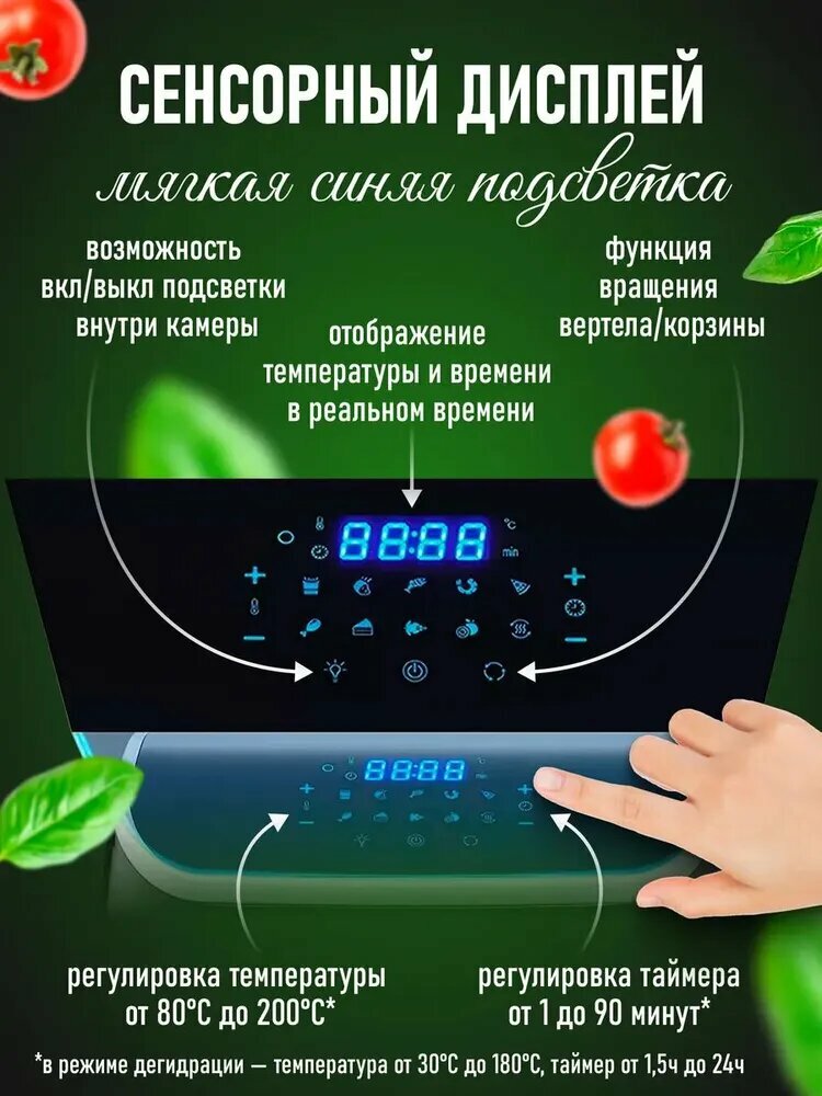 Объем аэрогриля составляет 12 литров, что позволяет приготовить достаточное количество пищи для всей семьи. Благодаря этому устройству, вы сможете приготовить разнообразные блюда, включая мясо, рыбу, овощи и даже выпечку.