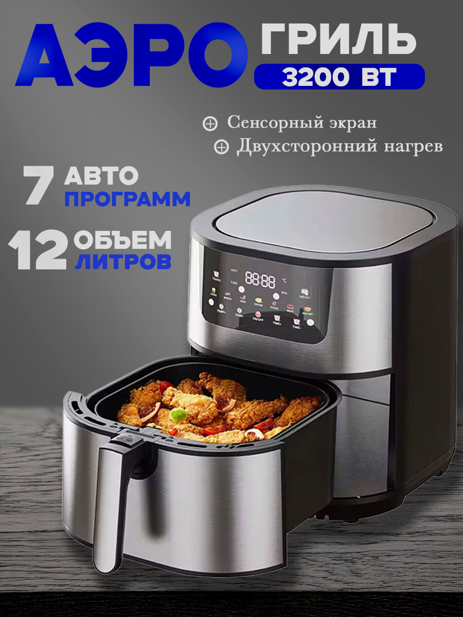 Аэрогриль электрический, 7 в 1, объем 12 литров, сенсорный, с функциям Фритюрница, Гриль, Духовка, 3200 Вт: сравнение цен, характеристики, фото, актуальное наличие и цены.