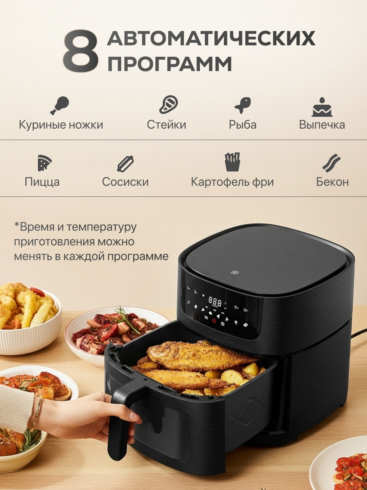Купить Аэрогриль электрический для дома 5 в 1, 8 программ, 1500 Вт. с доставкой по всей России. Аэрогриль электрический для дома 5 в 1, 8 программ, 1500 Вт.: сравнение цен, характеристики, фото, актуальное наличие и цены.