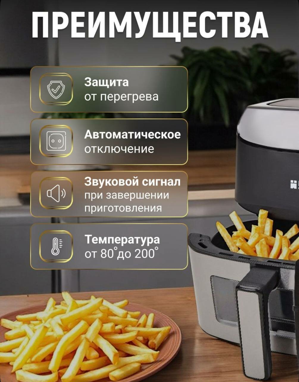 Купить Аэрогриль электрический Hoffmans 8 литров/мультипечь, аэрофритюрница 2000Вт с доставкой по всей России.