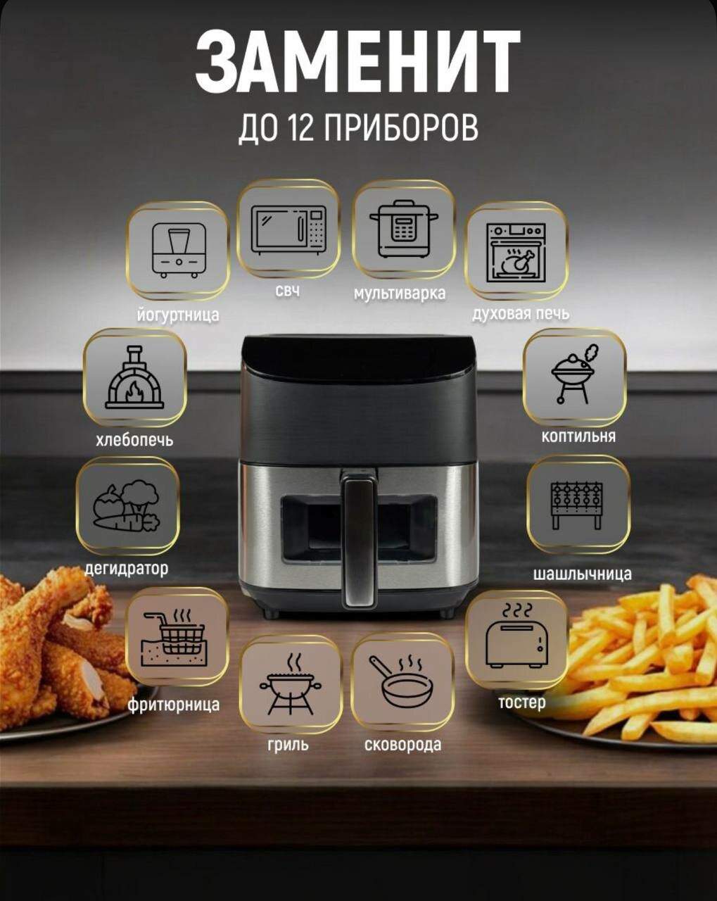 Аэрогриль электрический Hoffmans 8 литров/мультипечь, аэрофритюрница 2000Вт: сравнение цен, характеристики, фото, актуальное наличие и цены.
