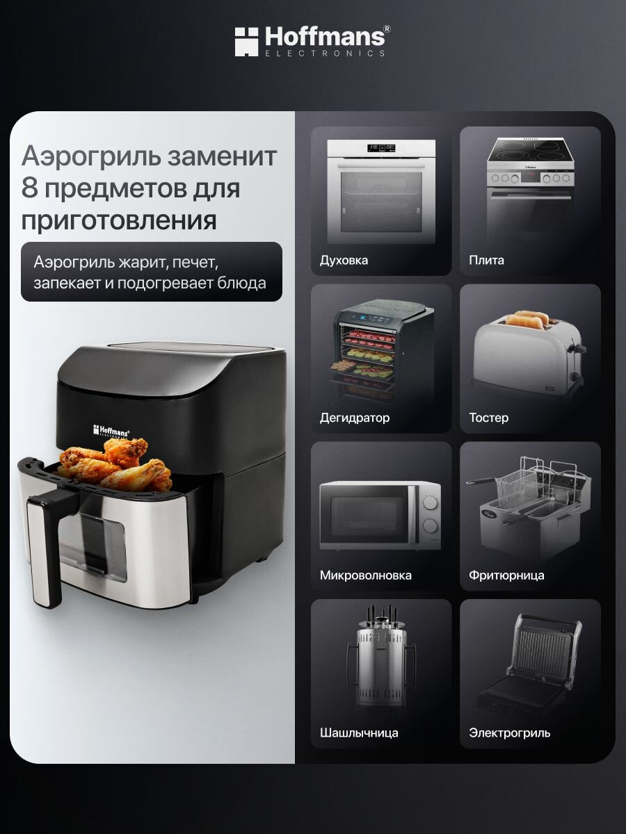 Купить Аэрогриль электрический Hoffmans 8 литров/мультипечь, аэрофритюрница с доставкой по всей России. Аэрогриль электрический Hoffmans 8 литров/мультипечь, аэрофритюрница: сравнение цен, характеристики, фото, актуальное наличие и цены.
