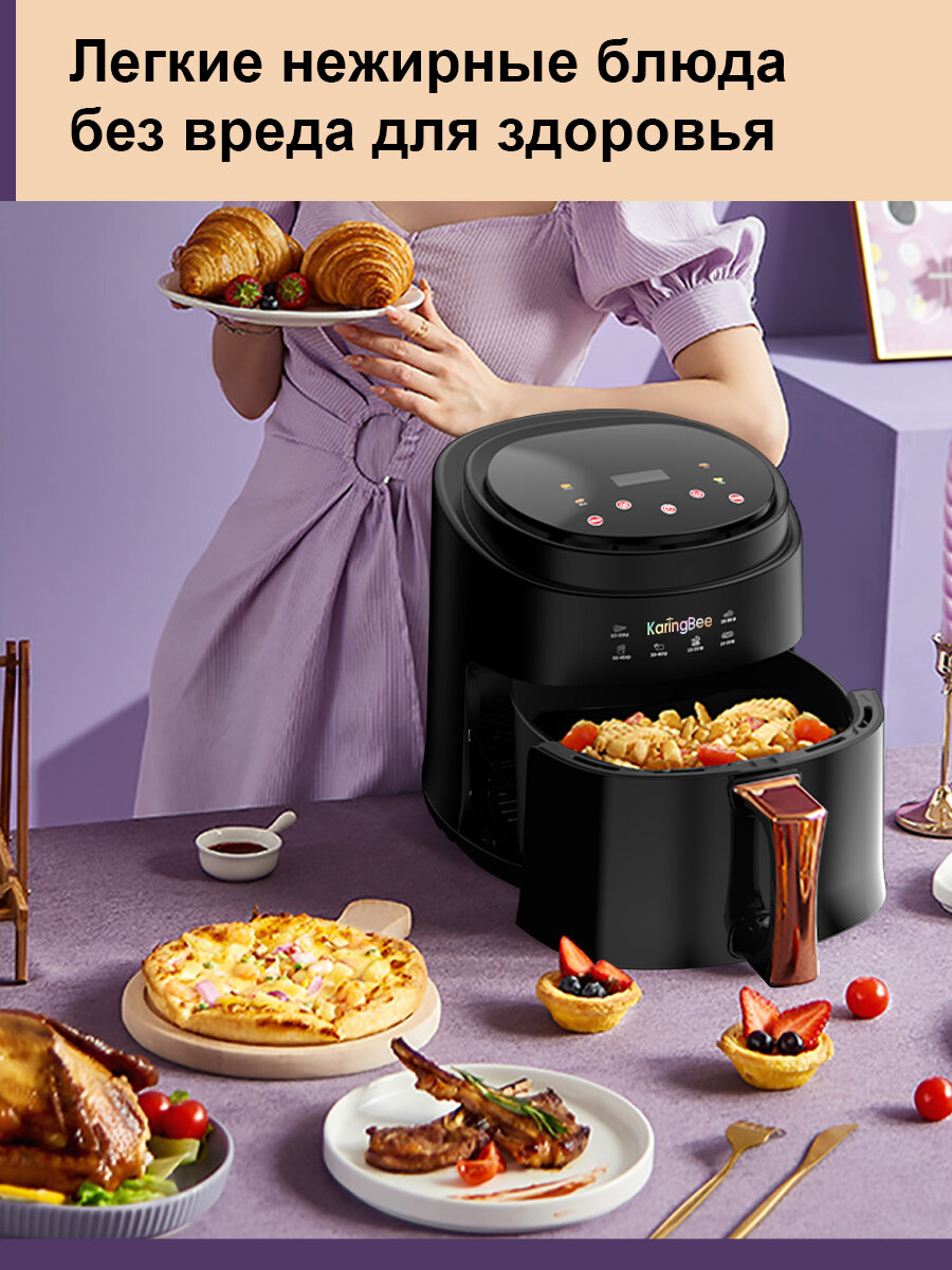 Купить Аэрогриль электрический KaringBee JD689 черный(ЕАС-сертификат)/100 вкладышей в подарок/ 6 программ/объем 8 л/1400 Вт с доставкой по всей России.