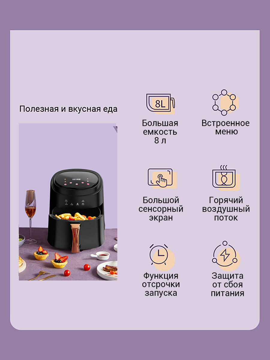 Аэрогриль электрический KaringBee JD689 черный(ЕАС-сертификат)/100 вкладышей в подарок/ 6 программ/объем 8 л/1400 Вт: сравнение цен, характеристики, фото, актуальное наличие и цены.