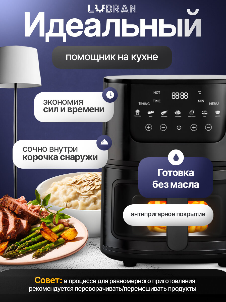 Аэрогриль электрический Lubran станет незаменимым помощником на вашей кухне, обеспечивая быстрое и вкусное приготовление разнообразных блюд.