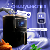 Аэрогриль электрический Lumma Bella LB-60008, 7 литров, 7 авто программ, 1700 ВТ, сенсорный, для дома, удобно брать на дачу, черный