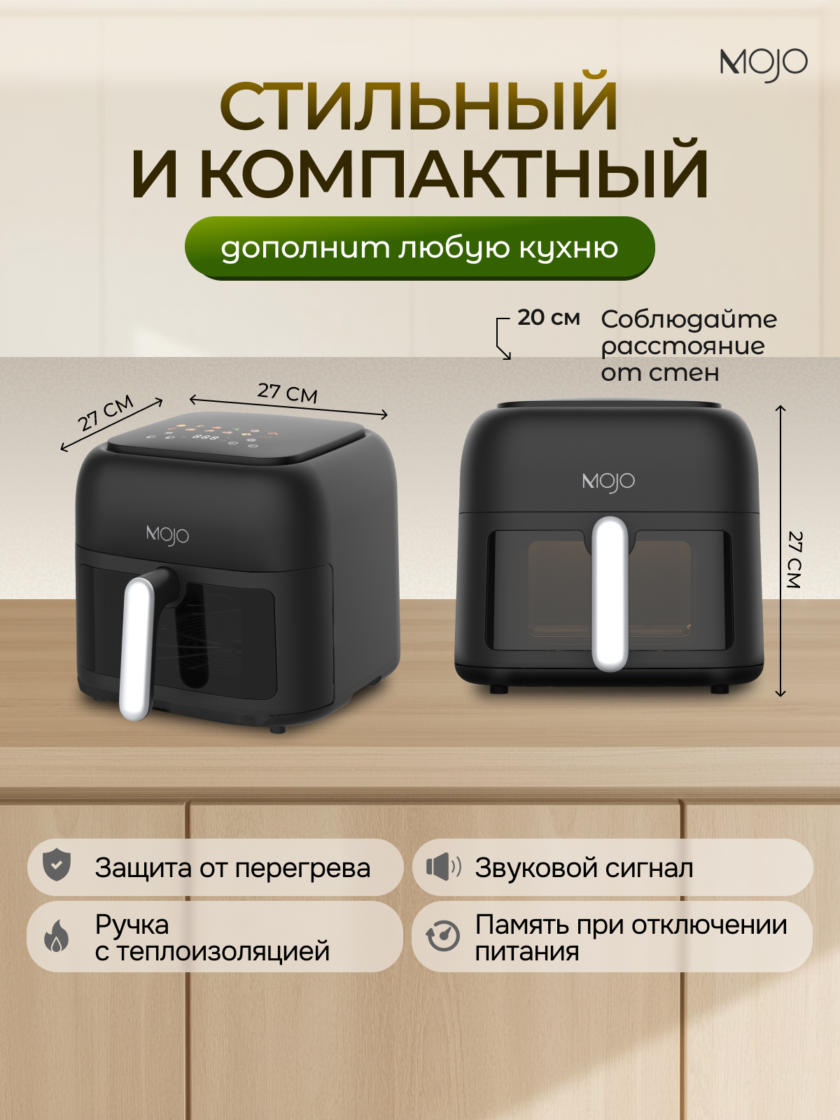 Аэрогриль электрический MOJO для дома 6,5 л, 1600 Вт, 12 программ