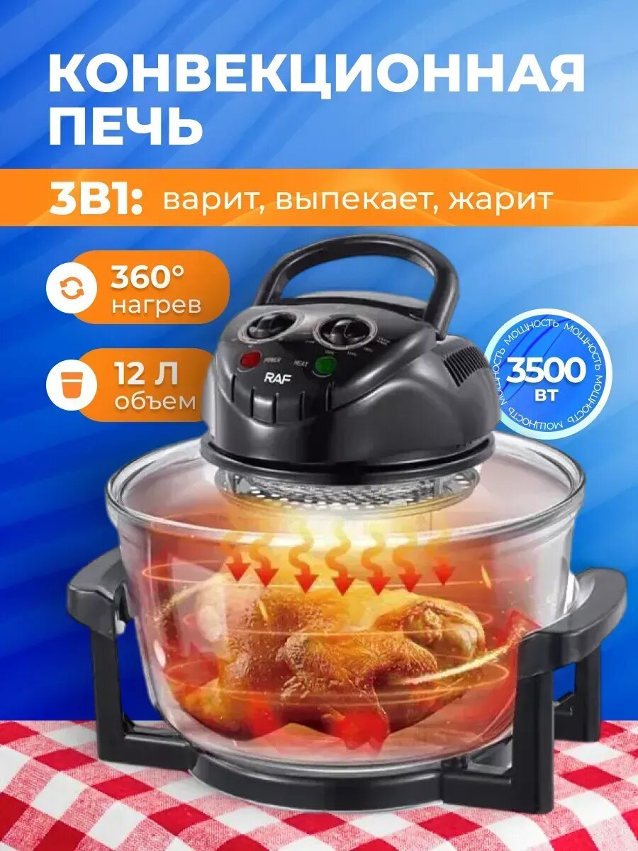 Аэрогриль электрический RAF 5302 со стеклянной чашей 12л, 3500вт: сравнение цен, характеристики, фото, актуальное наличие и цены.