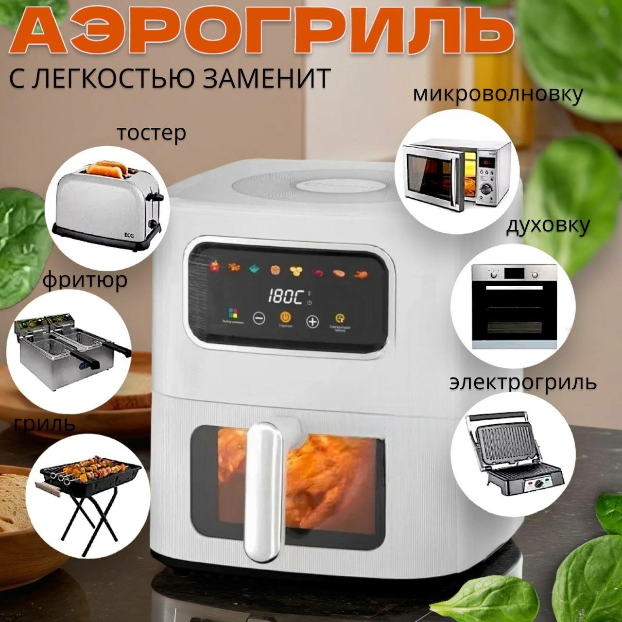 Аэрогриль электрический с антипригарным покрытием 6л/1400Вт/8 автоматических программ, COSIHALL: сравнение цен, характеристики, фото, актуальное наличие и цены.
