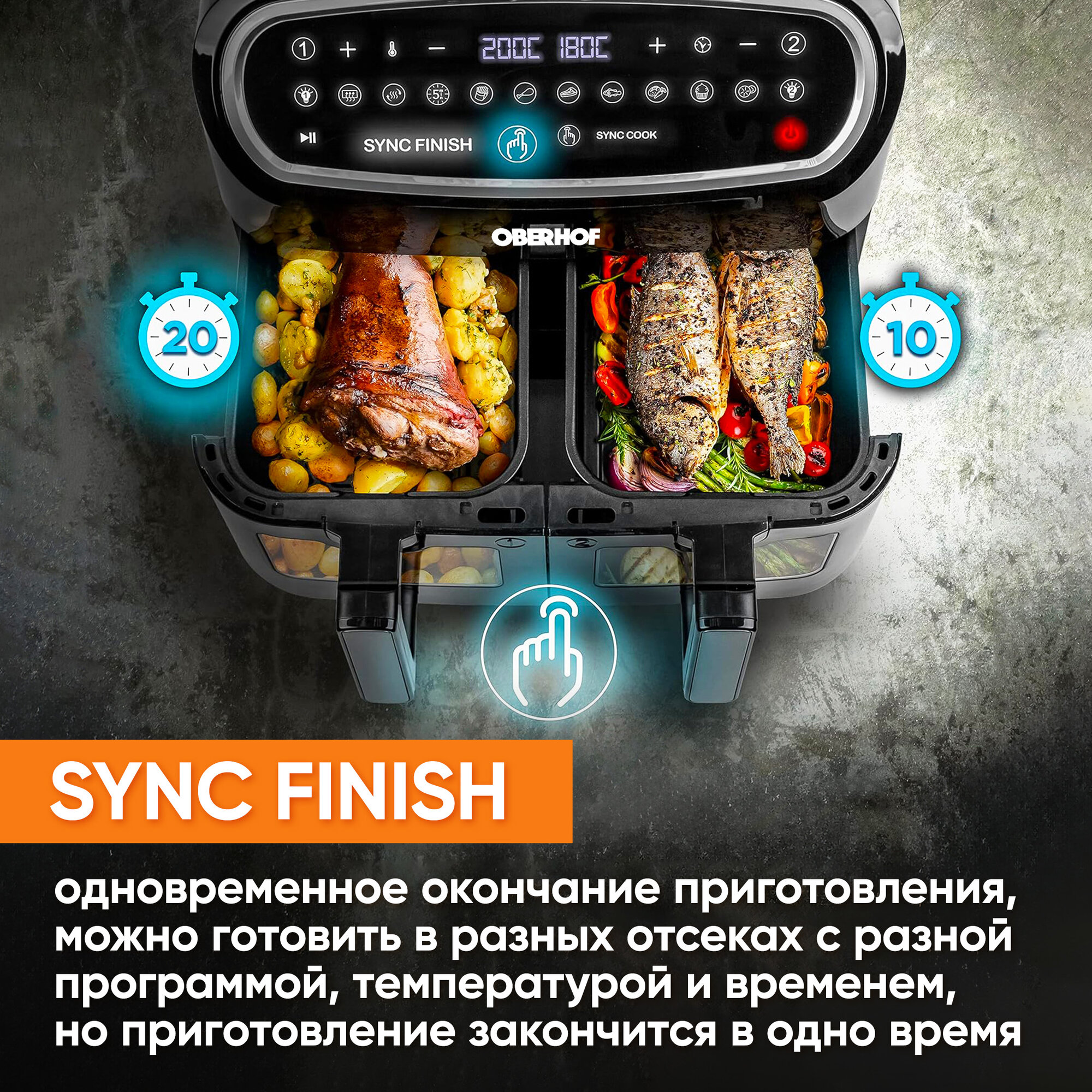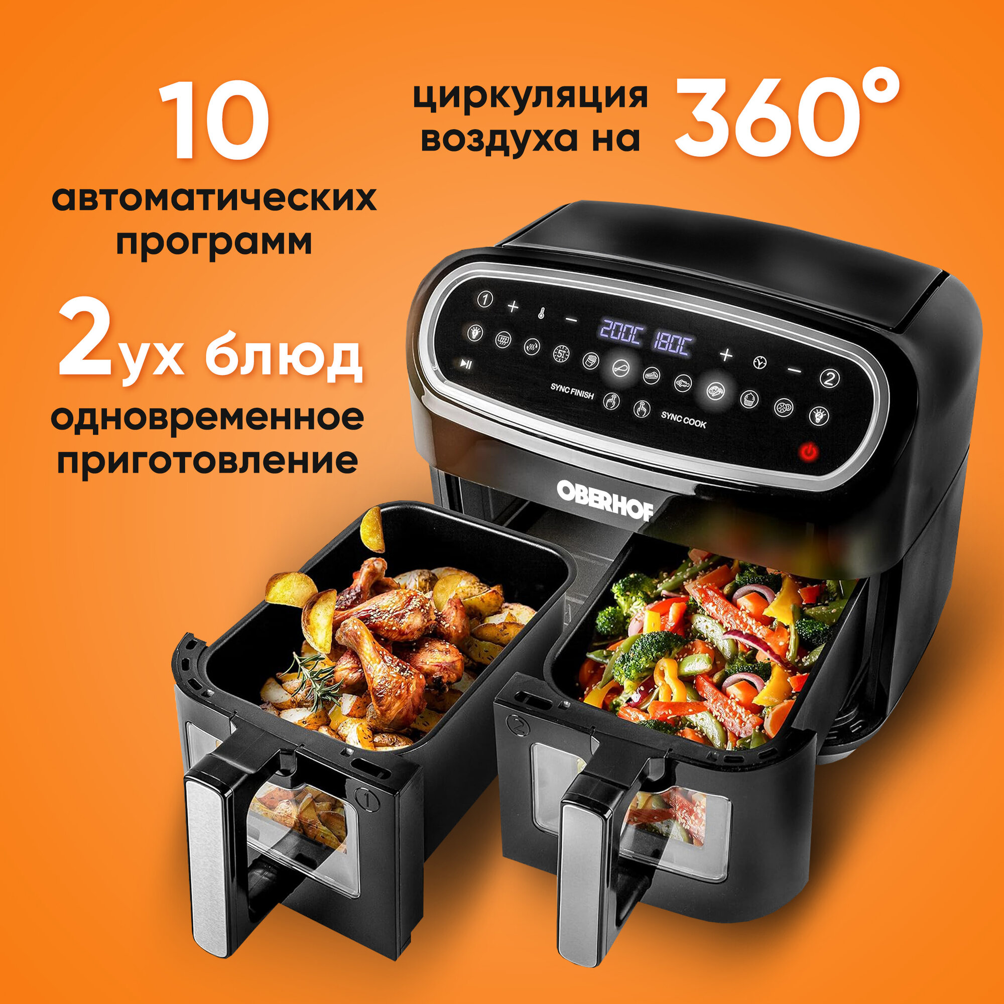 Аэрогриль электрический с двумя отсеками, Аэрофритюрница для кухни с конвекцией /электропечь с сенсорным управлением, сушилка, фритюрница OBERHOF Braten X16, 10 программ, 2400 Вт: сравнение цен, характеристики, фото, актуальное наличие и цены.