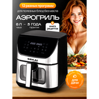 Аэрогриль электрический SEKAI — это ваш надежный помощник на кухне, который превращает процесс готовки в настоящее удовольствие. Благодаря 12 автоматическим программам и интуитивной сенсорной панели управления, этот аэрогриль предлагает вам широчайшие возможности для кулинарных экспериментов. Забудьте о масле и лишних калориях — инновационная технология вихревой циркуляции горячего воздуха на 360° обеспечивает равномерное приготовление блюд, сохраняя их натуральный вкус и питательные вещества.