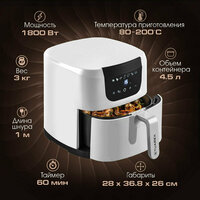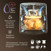 Модель имеет 7 автоматических программ, разработанные специально под конкретные блюда, поэтому Вам не придется контролировать процесс приготовления самостоятельно. С помощью данных программ, Вы сможете приготовить такие блюда как картофель фри, пиццу, куриные крылышки, куриные ножки, стейки, креветки и рыбу.