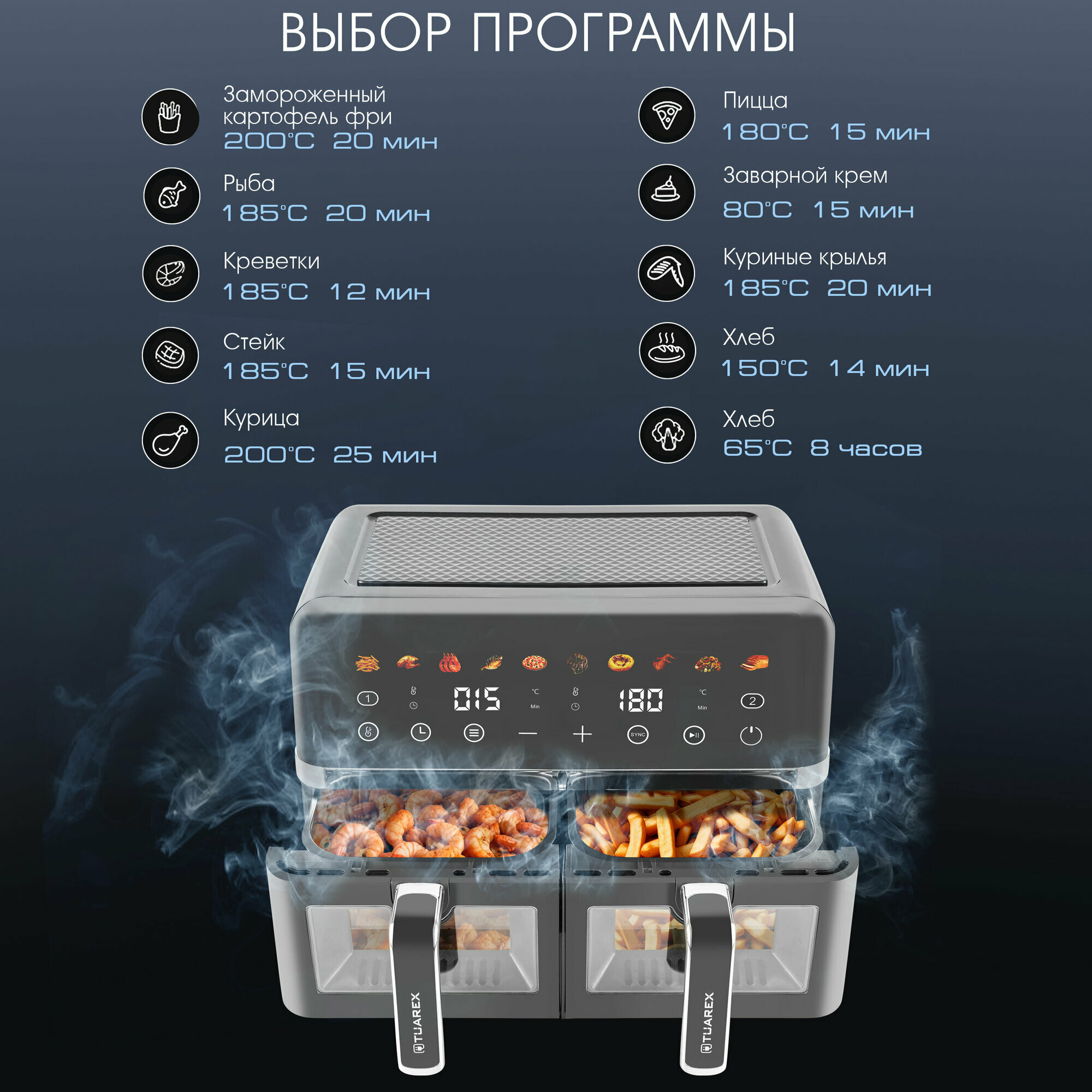 Аэрогриль электрический TUAREX AG 3003 / 2*4,5л / 10 автоматических программ: сравнение цен, характеристики, фото, актуальное наличие и цены.