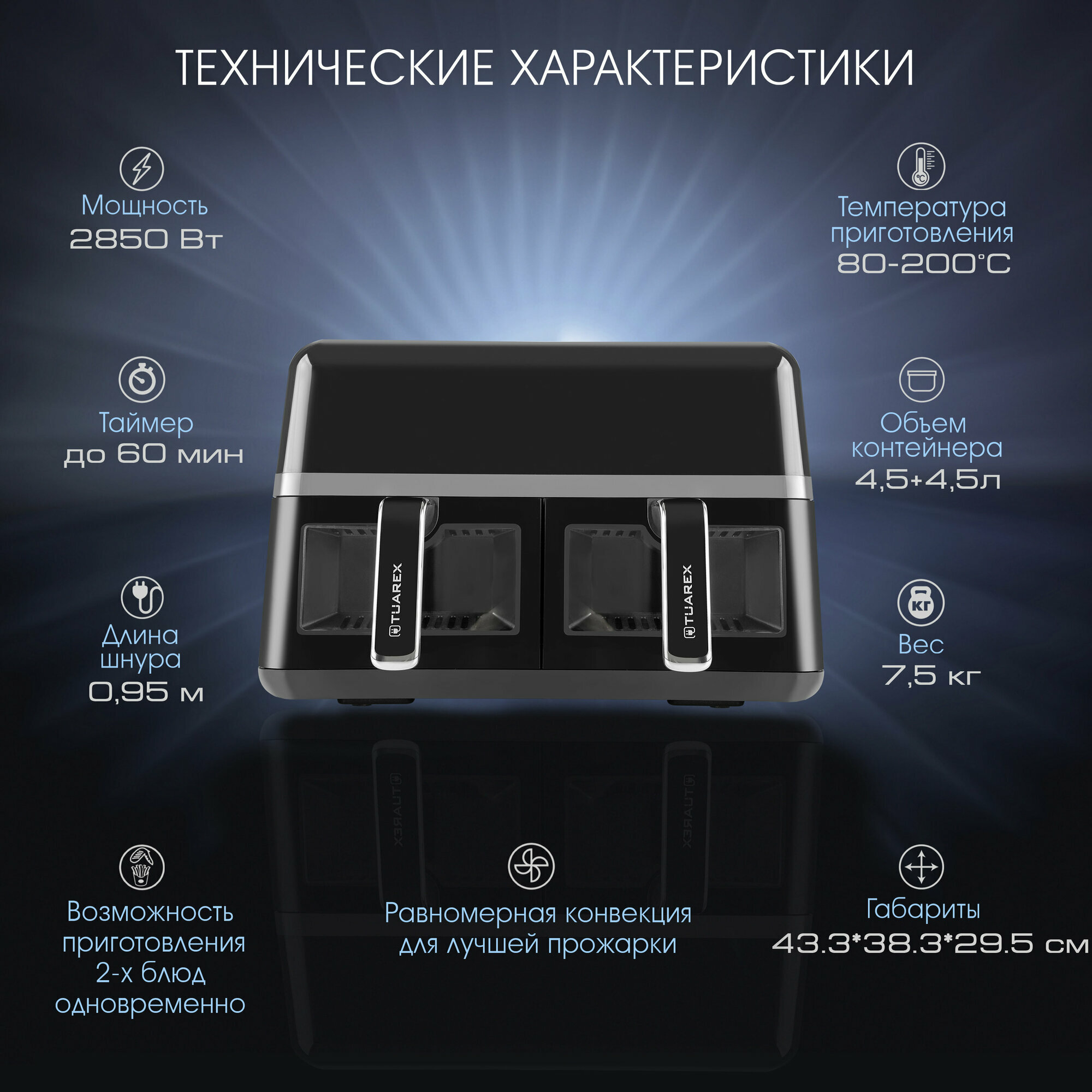 Купить Аэрогриль электрический TUAREX AG 3003 / 2*4,5л / 10 автоматических программ с доставкой по всей России.